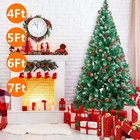 $ 17.974-7ft Artificial Christmas Tree Green Bushy Spruce Hinged Tree & Metal Stand US
