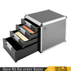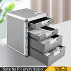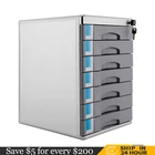 4/5/7 Drawer Desktop File Cabinet Storage Filing Cabinet w/ Label Lock Office 7 Drawers Description Files Are Cluttered and Often Involve Private Information, so It Is Necessary to Have a Practical Organizer to Safely Keep Them. This Drawer Organizer Is Your Ideal Choice. Made of High-quality Aluminum Alloy, It Is Strong and Durable. Meanwhile, the Lock Allows for Safe Storage and Different Compartments Make It Convenient to Sort Different Items. It Will Be a Great Addition to Your Home or Office. Key Features Premium Material: Made of High-quality Aluminum Alloy, It Can Resist Wear, Corrosion, Rust, Shock, Compression, and Deformation, so This Product Can Be Used for a Long Time. Sorted&Secure Storage: a Total of Seven Drawers with an Internal Height of 2inch Can Facilitate You to Sort and Store Different Documents. with a Hardware Safety Lock, It Allows for Multi-layer Linkage Locking to Prevent Your Items from Being Stolen or Lost. Fashionable Exterior: the Main Color of Grey and Anti-slip Texture Show a Full Aesthetic Feeling, Making This Product Look Simple but Luxurious. Excellent Stability: the Rectangular Shape, Large Bottom Area (11.8*14inch), and Sturdy Aluminum Alloy Frame Ensure Good Stability, so This Product Is Not Easy to Tip over. Saving Space: the Suitable Height (16inch) Makes It Fit Under Most Work Surfaces or Desks to save Space. Large Capacity: with a Large Size (11.8*14*16inch) and a Total of Seven Drawers, It Can Accommodate Not Only Lots of Files but Also Notebooks, Letters, Calculators, Pens, Books, and Other Items, Which Can Meet Your Daily Storage Needs and Within Reach. Meanwhile, the Top Platform Can Also Serve As a Storage Platform for Small Items or Be Used As a Printer Stand. Hassle-free Use: the Product Is an Integrated Design and Doesn't Need Assembly, so You Can Use It Directly After Receiving It. and It Is Well-sealed to Isolate Dust and Water, Which Can Prevent the Document from Getting Wet or Dirty. Easy Cleaning: the Smooth Surface Allows You to Wipe It with a Wet Cloth and Dry It. Guaranteed Customer Service: We Aim to Provide Quality Products and Services. If You Have Problems, Please Feel Free to Contact Us. We Will Reply and Solve the Problem for You As Soon As Possible. Details Recessed Handle: the Metal Handle on Each Drawer Adopts a Recessed Design, Allowing You to Easily Pull the Drawer. Label bar: the Label bar on the Side Can Mark the File Storage Location to Allow for Convenient Identification. Wrapped Corners: the Wrapped Corners Can Prevent Scratching Your Hands and Bruises While Protecting This Product. Application It Can Be Used to Store Files, Office Papers(up to Din A4), Various Office Supplies, Business Cards, Craft Supplies, School Supplies, Pens, Cds, Usb Sticks, Bills, Delivery Notes, and Other Items, and Is Suitable for Homes, Offices, Hospitals, Hotels, Schools, Shopping Malls, Banks, and Other Places. Specification Color: Grey Material: Aluminum Alloy Shape: Rectangular Style: Modern Mounting Type: Desktop Placement, Freestanding Number of Drawers: 7 Net Weight: 6kg/13lbs Gross Weight: 6.33kg/13.9lbs Package Size: 36*31*42cm/14*12*16inch Product Size: 30*36*40.5cm/11.8*14*16inch Package Included 1* Drawer Organizer 2* Keys Notes Please Allow the Slight Color Difference Caused by the Shooting Light and the 1-3 Cm Error Due to Manual Measurement, and Make Sure You Do Not Mind Before Ordering. 5 Drawers Description Files Are Cluttered and Often Involve Private Information, so It Is Necessary to Have a Practical Organizer to Safely Keep Them. This Drawer Organizer with Stepped Drawer Design Is Your Ideal Choice. Made of High-quality Aluminum Alloy, It Is Strong and Durable. Meanwhile, the Lock Allows for Safe Storage and Different Compartments Make It Convenient to Sort Different Items. It Will Be a Great Addition to Your Home or Office. Key Features Premium Material: Made of High-quality Aluminum Alloy, It Can Resist Wear, Corrosion, Rust, Shock, Compression, and Deformation, so This Product Can Be Used for a Long Time. Sorted&Secure Storage: a Total of Five Drawers with Different Internal Heights of 2/3.9inch Can Facilitate You to Sort and Store Different Documents. with a Hardware Safety Lock, It Allows for Multi-layer Linkage Locking to Prevent Your Items from Being Stolen or Lost. Fashionable Exterior: the Main Color of Grey and Anti-slip Texture Show a Full Aesthetic Feeling, Making This Product Look Simple but Luxurious. Excellent Stability: the Rectangular Shape, Large Bottom Area (12.4*13.8inch), and Sturdy Aluminum Alloy Frame Ensure Good Stability, so This Product Is Not Easy to Tip over. Saving Space: the Suitable Height (16inch) Makes It Fit Under Most Work Surfaces or Desks to save Space. Large Capacity: with a Large Size (12.4*13.8*16inch) and a Total of Five Drawers, It Can Accommodate Not Only Lots of Files but Also Notebooks, Letters, Calculators, Pens, Books, and Other Items, Which Can Meet Your Daily Storage Needs and Within Reach. Meanwhile, the Top Platform Can Also Serve As a Storage Platform for Small Items or Be Used As a Printer Stand. Hassle-free Use: the Product Is an Integrated Design and Doesn't Need Assembly, so You Can Use It Directly After Receiving It. and It Is Well-sealed to Isolate Dust and Water, Which Can Prevent the Document from Getting Wet or Dirty. Easy Cleaning: the Smooth Surface Allows You to Wipe It with a Wet Cloth and Dry It. Guaranteed Customer Service: We Aim to Provide Quality Products and Services. If You Have Problems, Please Feel Free to Contact Us. We Will Reply and Solve the Problem for You As Soon As Possible. Details Recessed Handle: the Metal Handle on Each Drawer Adopts a Recessed Design, Allowing You to Easily Pull the Drawer. Label bar: the Label bar on the Side Can Mark the File Storage Location to Allow for Convenient Identification. Meanwhile, It Can Be Folded to Ensure Aesthetics and save Space. Wrapped Corners: the Wrapped Corners Can Prevent Scratching Your Hand