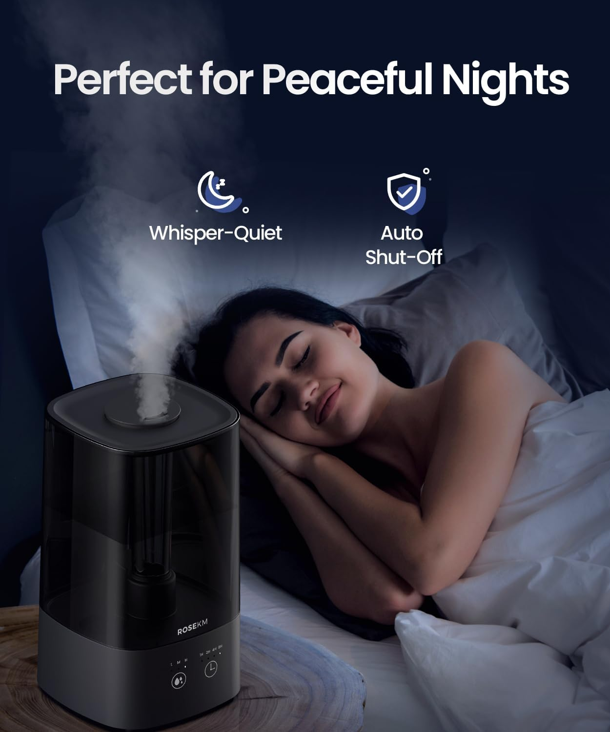 Store New Arrivals Add to Favorite View Feedback Contact 4.5L Humidifiers for Bedroom, Humidifiers for Home Large Room, Cool Mist Humidfiers for Baby and Plant with Timer, Adjustable Mist Level, 360° Nozzle, Auto Shut-Off, Black Description Item model number KC-KM13T-4.5L Room Type Bedroom, Kids Room, Living Room, Nursery, Office Product Dimensions 6.81"D x 6.81"W x 11.65"H Capacity 1.19 Gallons Color 4.5L Large Humidifier Wattage 18 watts Item Weight 3.1 pounds Operation Mode Manual Voltage 110 Volts (AC) Model Name KC-KM13T-4.5L Special Feature Adjustable Humidity Control, Auto Shut Off, Low Water Indicator, Removable Tank, Timer Included Components User Manual LONG-LASTING COMFORT: Relieve congestion, coughing, and dry skin with up to 40 hours of continuous moisture from a 4.5L (1.2 gal) capacity on low mist setting. FLEXIBLE TIMER OPTIONS: Set your shut-off timer as per your comfort, choose from 1, 2, 4, or 8 hours. Your comfort, perfectly matched to your daily routine. PERFECT FOR PEACEFUL NIGHTS: An ultra-quiet companion to lull you into deep, restorative sleep. Breathe easier, sleep better. PERSONALIZED MIST CONTROL: Experience the ease of adjusting mist levels to Low, Mid, or High with a simple touch, creating your perfect ambiance. CONTROLLED COVERAGE: With the 360° nozzle, you control the direction of the mist, providing focused humidity where it's needed most. NO WATER, NO MIST: This humidifier will automatically stop producing mist when the water tank is empty, ensuring your safety and appliance longevity. 5-YEAR WARRANTY: Enjoy peace of mind with the Rosekm humidifier, which comes with a five-year warranty. Our customer support team is here to ensure your satisfaction! Product description Why the Button Doesn't Respond When Pressed? Pressing, pushing, or holding the power button won't work. Simply tap it gently for proper operation. What would happen if I add essential oils to this humidifier? Essential oils will corrode the humidifier, causing the water tank or base to crack. Could I put the humidifier on the floor or a wooden table? Yes, but it isn’t the smartest move: 1. Best place to put a humidifier is where the most airflow is. 2. Potential of wetting the surroundings due to locally high humidity levels, it is recommended to put a tray underneath it. Is the bubbling/knocking sound it makes while running normally? It is normal for the humidifier to have bubbling sounds sometimes. It is the sound of water moving from the water tank to the base. Other times it is quiet and does not affect its performance. Is it normal to have standing water in the base when you refill the water reservoir? Yes, it's normal. The water flowing from the tank to the base when you add water and place it back is part of the humidifier's operation. It draws water from the tank and disperses it through the base to increase room humidity. ABOUT US We offer the best prices around on high quality products. Our E-store includes media such as books, movies, music and games while offering electronics, toys, sporting apparel, clothing, tools, general home, garden items and more. SHIPPING We are always working hard to ensure your package arrives as soon as possible. Please understand that some factors like weather, high postal traffic, and the performance of shipping companies are outside of our control. We offer free shipping to the lower 48 states and ship within 2 business days of payment, usually sooner. We do not accept P.O. Boxes. Please provide a physical address. For shipping outside of the continental USA, we only use eBay's Global Shipping Program.The item is shipped to KY and then sent to the rest of the world. International customers are responsible for all duties and taxes. Continue to check out in order to calculate costs for shipping the item to your country. Messages regarding eBay's Global Shipping Program MUST be directed at eBay EXCLUSIVELY. RETURNS We offer a 30-Day Return Policy on items which you are not completely satisfied with. You have the option for a full-refund or an exchange of the item. No returns are available on items shipped outside of the USA. PAYMENT We accept PayPal. CONTACT US This page content is yet to come Please ad us to your favorite seller and visit again later Thank You CUSTOMER SATISFACTION We try our very best to make sure every customer is completely satisfied. If there's a problem, message us! We're happy to help. WE ACCEPT Copyright © 2021 AutoDS. | All Rights Reserved