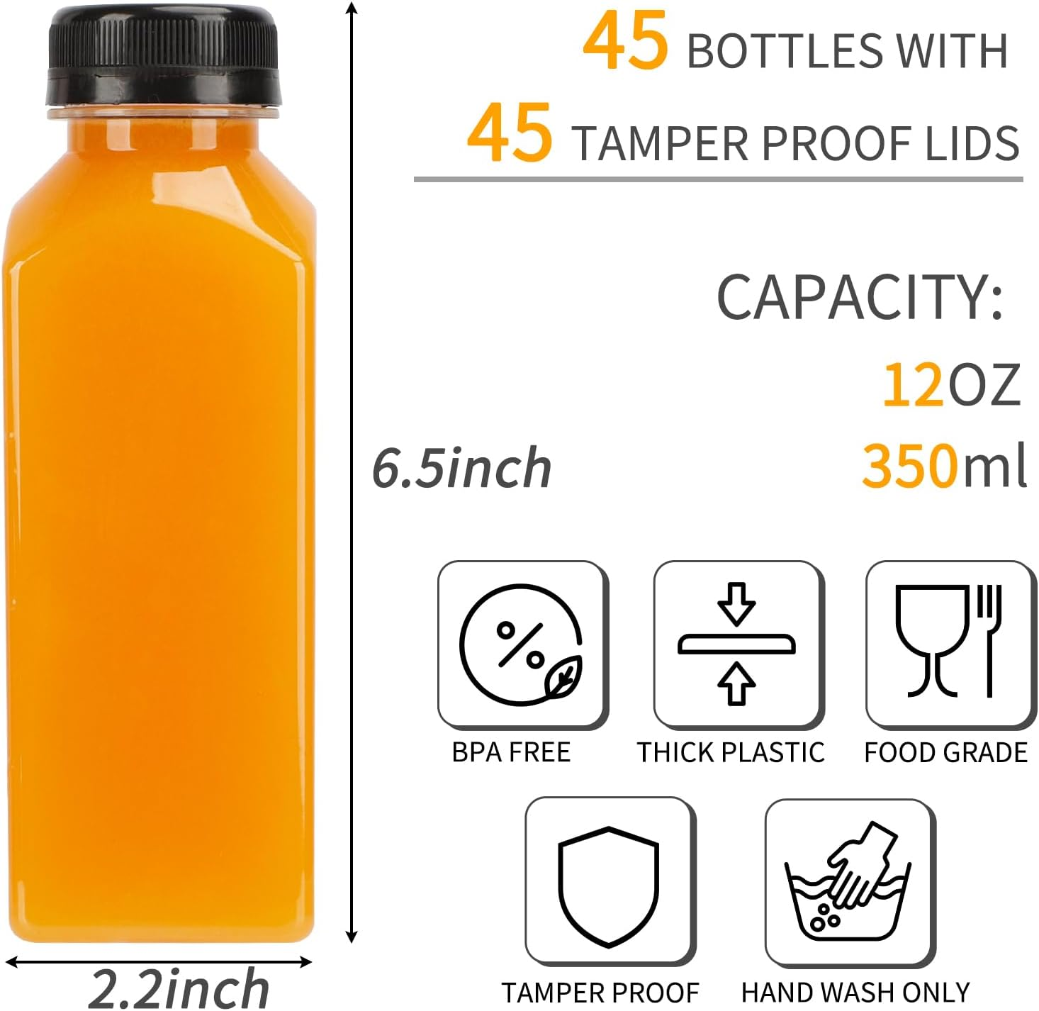 $ 18.345pcs Juice Bottles, 12oz Reusable Juice Bottles with Caps and Labels, Funnel...