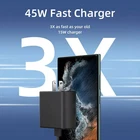 45W USB-C Super Fast Wall Charger & 6FT Cable For Samsung Galaxy S20 S21 S22 S23 Feature: √ [ 45W Rapid Charging ] PD3.0 Power Delivery Technology guarantees an optimized and fast safe charging experience (45W) for all Samsung Galaxy devices. √ [ Broad Compatibility ] The USB C charger charges majority of USB Type-C and PD devices and non-PD Devices at full speed. Provides up 25W fast charge. √ [ 6 Feet USB-C to USB-C Charging Cable ] Length of 6 feet, easy for charging on different occasion, for travel, home, car, office, etc. √ [ Flexibility and Safety ] Use the cable to sync and transfer files at amazing speeds with your Galaxy or other compatible smartphone or laptop. Intelligent circuit design protects against short circuiting, over-heating, over-current, and over-charging for safe with fast charging. Sustained high-power output will have a temperature rise, but they are all within the safety limits. √ [ Slim & Compact ] Small, lightweight and convenient store in your bag and carry. Specification: [Type]: 45W PD3.0 fast charge charger [Output power]: 45W [Material]: Fireproof ABS Plastic + PC [Port Type]: USB-C [Input voltage]: AC 100-240V 50-60Hz [Working temperature]: 0-70℃ [Output voltage]: PDO : 5V/3A or 9V/3A or 15V/3A or 20V/2.25A [Output current]: PPS : 4.05A(3.3-11V) or 2.8A(3.3-16V) or 2.1A(3.3-21V) [Output protection]: Over-current protection,short circuit protection, overvoltage protection, overheat protection. Fast Charger for Phones: ✔for Samsung Galaxy S23 Ultra 5G,S23 Plus 5G,S23 5G,S22 Ultra 5G, S22 Plus 5G, S22 5G, S21 Ultra 5G, S21 Plus 5G, S21 FE, S21 5G, S20 Ultra 5G, S20 Plus 5G, S20 5G, S20 FE ✔for Samsung Galaxy S10, S10 Plus, S10e, S9, S9 Plus, S9 Active, S8, S8+, S8 Active ✔for Samsung Galaxy Note 20 Ultra 5G, Note 20 5G, Note 10 Plus 5G, Note 10, Note 9, Note 8 ✔for Samsung Galaxy A02s, A03s, A03, A3, A5, A6, A7, A8, A9, A10, A10E, A11, A12 ✔for Samsung Galaxy A20, A21, A21s, A22, A31, A32, A40, A41, A42, A50, A51, A52, A53, A60, A70, A70s, A71 5G, A72, A80, A90 ✔for Samsung Galaxy Z Fold 2/ Z Fold 3/ Z Fold 4/ Z Flip/ Z Flip 3/ Z Flip 4/ F52 ✔ for Samsung Galaxy Tab A 8.0(2018), Tab A 10.1 (2019), Tab 10.5, Tab A 8.0 ✔ for Google Pixel, Pixel 2, Pixel 3, Pixel XL, Pixel 2XL, Pixel 3XL, Pixel 4XL, Pixel 3A ✔ for LG G5, G6, G7, G7 Thing, G8, Stylo 4, V20, V30 ThinQ Plus, V35, V30S, V40 ThinQ Plus ✔ for Motorola Moto Z, 11, for One Plus, for HTC, for ZTE Axon, for Nexus 6p 2018 and up iPad Pro 12.9 ✔Other USB Type C Device Package included: 1 * 45W Fast USB-C Charger Adapter & 1 * 6ft Cable