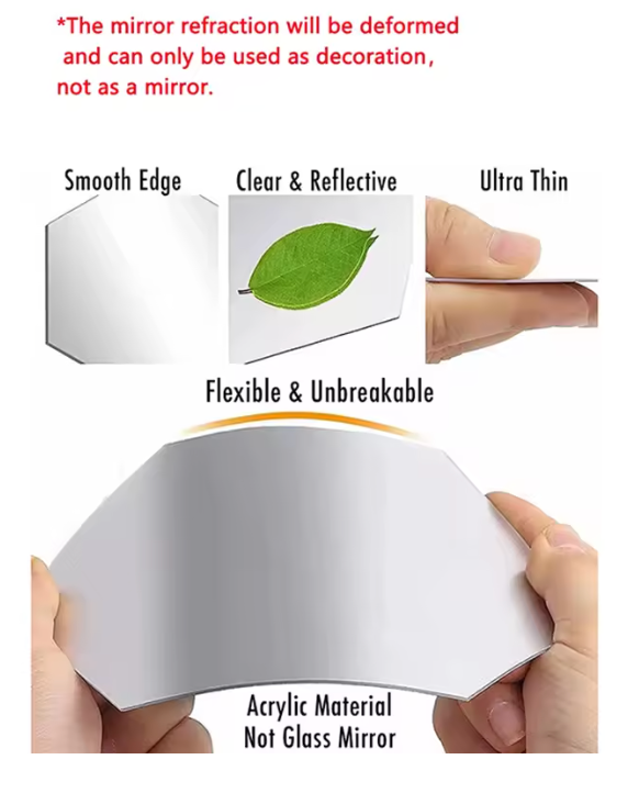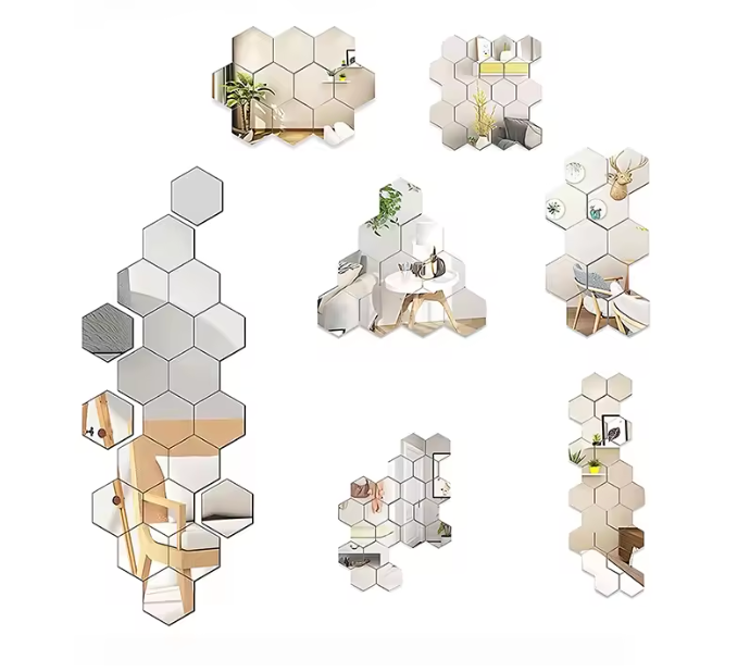 The product is a set of 45 hexagonal mirror wall stickers from the DIY brand. These decorative stickers feature a mirrored finish, making them suitable for creating unique and stylish wall art in any household. The geometric shape adds a modern touch to any space, while the art theme enhances the overall aesthetic appeal. Perfect for adding a personalized and artistic flair to any room in your home.