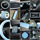 Home46-Piece Luxury Rhinestone Car Accessories Set for Women with Leather Steering Wheel Cover