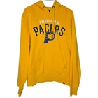 The '47 Brand NBA Indiana Pacers Hoodie Sweatshirt in yellow and blue is an officially licensed product featuring the Indiana Pacers team logo. Made for unisex adults in size medium, this sweatshirt is suitable for basketball fans looking to support their team in style. This sweatshirt is perfect for wearing during the NBA regular season games to stay warm and show team pride. The measurements are 23" front chest and 26" length. It is preloved in excellent condition.