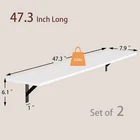 Long Wall Shelves, 47.3Inch Wall Mounted Shelves Set of 2, Extra Large Floating Storage Ledges with Sturdy Metal Brackets for Living Room, Bathroom, Bedroom, Kitchen, White 【Sturdy & Durable】Made of sturdy particleboard and metal brackets for safe and durable uses. The metal support shelves of are thicker than others for added stability and stronger load-bearing capacity(up to 33lbs). Extra anti-tipping device ensures the wooden shelves without deformation 【Extra Large, Storage More】Multiple shelves create extra storage space on the wall. Wider and longer than others, bringing more possibilities for wall display. Make full use of vertical space to organize clutter and free up messy desktop. Set of 2 long hanging shelves offer multi-layer storage without taking up spaces. Dimension: 47.3"L x 7.9"W x 6.1"H 【Perfect Home Decor】Triangle iron bracket, with super stability and elegant simplicity, never out of date. Minimalist design perfectly blends with your home decoration, adding art and modern style to your home. Create eye-catching areas by presenting well-distributed small-scale space. Enjoy a graceful life and feel the art of home easily in the perfect combination of smooth lines and heavy duty metals 【Wide Application】Extra long shelves for wall storage is gospel of small family to enjoy the tranquility of home. Large floating shelves allow you to store books, games, decorations, plants, towels, photos, collectibles etc. Even to be an ideal play area for your cats. Create additional storage in living room, bathroom, bedroom, closet, balcony, study, kitchen, laundry, bar area, pantry and office 【Easy to Assemble】Easy-to-read instructions give you a step-by-step guide. Accompanying tools and numbered accessories make installation quick and easy. Two types of expansion screws are provided for different wall materials. Unobstructed design of metal brackets allows you got the screw in effortlessly Large Floating Wall Shelves, White Long Shelves Set of 2, Easy assembly Farmhouse Shelves with Metal Brackets, Ideal for Living Room, Bathroom, Bedroom, Kitchen, Entryway, Home Office and more. Specifications: - Color: White - Material: Particleboard & Metal - Dimension: 47.3"L x 7.9"W x 6.1"H (120 x 20 x 15 cm) - Max.Static Load Capacity: 33lb (15kg) Package Contents: - 2 x Wall Shelves - 4 x Metal Brackets - 1 x Hardware Bag - 1 x Instructions - 2 x Gloves Features: Expand Storage Spaces: Struggling with limited storage and cluttered desktop? Storage, not confined to the floor or desk. A few simple ledges will divert your attention from the cluttered desk to the neat and beautiful wall. Longer and wider ledges bring more possibilities for wall display. A Piece of Decoration: The rustic display shelf isn’t just for holding your decorations, it’s a decorative piece itself. Industrial and stylish design creates modern and elegant feel. The clear wood grain combines natural atmosphere with artistic appeal. Easily creates an eye-catching area for your home! Your Safe Is Our Top Priority: The high-quality particleboard frame and thickened iron brackets add stability and stronger load-bearing capacity. Extra anti-tipping device ensures the wooden shelves without deformation over time. Fine finish and edge banding ensure the surface safe and smooth without barbs. Assemble is a piece of cake: Easy to read instruction and high quality accessories make installation easier. Two types of expansion screws are provided for different wall materials. Unobstructed design of metal brackets allows you got the screw in effortlessly. Perfectly Fits All Rooms: Serve as display shelves in your living room and bedroom for home decoration; serve as wall shelves in bathroom to hold towels and toilet paper; serve as storage rack in kitchen to store spices and tableware; serve as flower stand to show you plants on balcony; create a reading corner in study room and home office. These wall-mounted shelf organizers will do their job perfectly anywhere in your home! is trustworthy as we committed to improving your quality of life and bringing you a healthy and safe living environment! Shipping We offer FREE shipping on all orders! We ship within Three business days of payment, usually sooner. We use a selection of shipping services such as UPS, FedEx, USPS etc. We only ship to the lower 48 states, no APO/FPO addresses or PO Boxes allowed. Local pickups and combined shipping options are not provided at this time. Return You can return a product for up to 30 days from the date you purchased it. Any product you return must be in the same condition you received it and in the original packaging. Please keep the receipt. Payment We accept payment by any of the following methods: PayPal Please pay as soon as possible after winning an auction, as that will allow us to post your item to you sooner! Feedback Customer satisfaction is very important to us. If you have any problem with your order, please contact us and we will do our best to make you satisfied. Contact Us If you have any queries, please contact us via ebay. We usually respond within 24 hours on weekdays. Please visit our eBay store to check out other items for sale! Thank you for shopping at our store.
