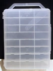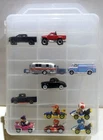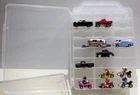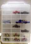 New 48 car carrying case is made of durable plastic and have 23 fixed compartments on each side (1-double wide compartment on each side.) Lids are hinged and snap shut securely. Sturdy carrying handle on top of case. Overall size is 10.25 in. X 14.25 in. X 3.25". Individual compartments are 3-1/8" wide, 1-1/2" tall, and 1-1/2" deep. Ideal storage case for most 1/64th diecast cars, HO sized Slot cars, sewing thread spools, bobbins, small Christmas ornaments, etc. Many Mario Kart and Pixar Cars vehicles fit fine, but some characters may require modifications of case to fit (see pictures). Cases are new, but may have scuffs from the factory. LMK if you need more pictures or information. Please take a look at my other items. Good luck and thanks for looking. I will give refunds only if the item is not as described. Feedback given after feedback received. ***AS ALWAYS, ITEMS WILL BE SHIPPED IN A BOX!!*** U.S. SHIPPING: I always combine shipping. Request an invoice so I can adjust shipping cost. International: (I no longer ship to Brazil, EU, UK) PLEASE BE AWARE OF YOUR CUSTOMS RULES/COSTS. ALL ITEMS MARKED AS MERCHANDISE, NOT GIFT. I HAVE NO CONTROL OVER DELAYS DUE TO CUSTOMS ISSUES.