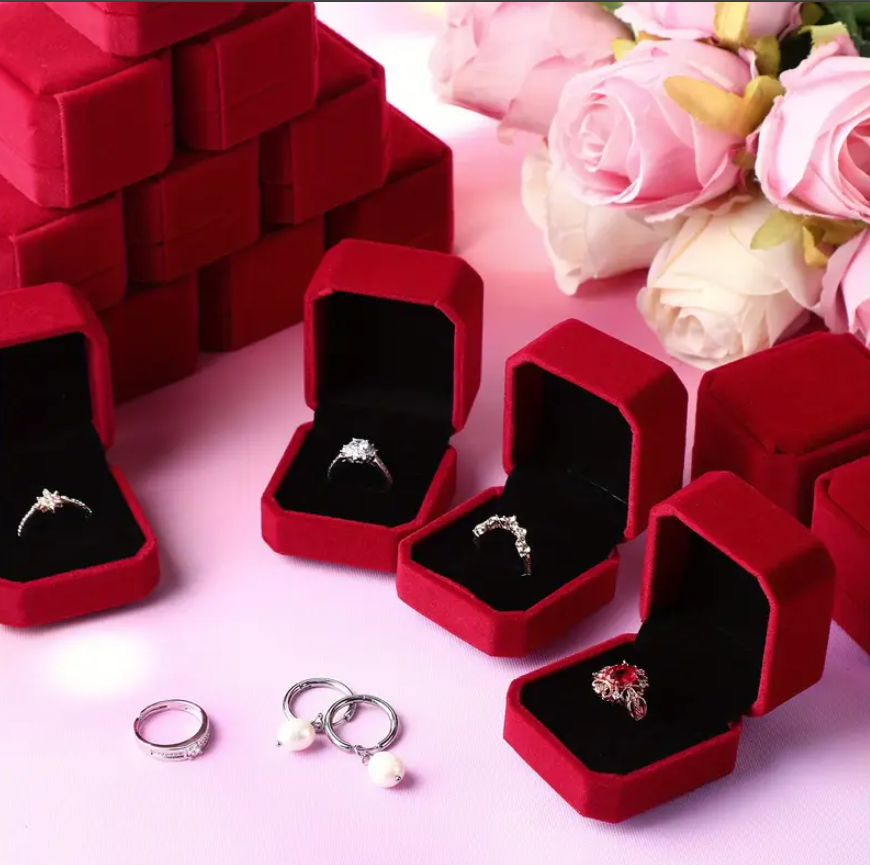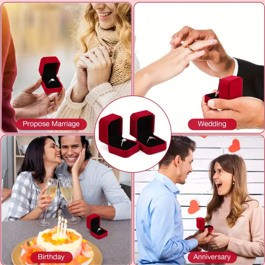 48 PCS Velvet Ring Boxes – Elegant Red Engagement Jewelry Gift Cases Description: Present your jewelry in style with these elegant red velvet ring boxes. Designed with a soft touch and premium finish, they’re perfect for weddings, proposals, anniversaries, or gift-giving. Whether you're a seller, planning an event, or surprising a loved one, these boxes add a touch of class to every ring presentation. Key Features: Elegant & Thoughtful Gift: Ideal for friends, family, neighbors, or colleagues celebrating engagements, weddings, or special events. Discreet & Portable: Lightweight and compact, these boxes easily fit in a pocket or bag, perfect for surprise proposals or travel. Multipurpose Use: Great for weddings, birthdays, Christmas, anniversaries, or retail display for jewelers. High-Quality Material: Made from soft red velvet for a luxurious feel and added protection for your jewelry. Specifications: Material: Velvet Color: Red Size (Each Box): 2.13 X 2.01 X 1.54 Inch Quantity: 48 pieces Package Includes: 48 x Red Velvet Ring Boxes Please Note: Measurements are approximate and may vary slightly due to manual measurement. Actual color may differ slightly due to monitor settings and lighting.