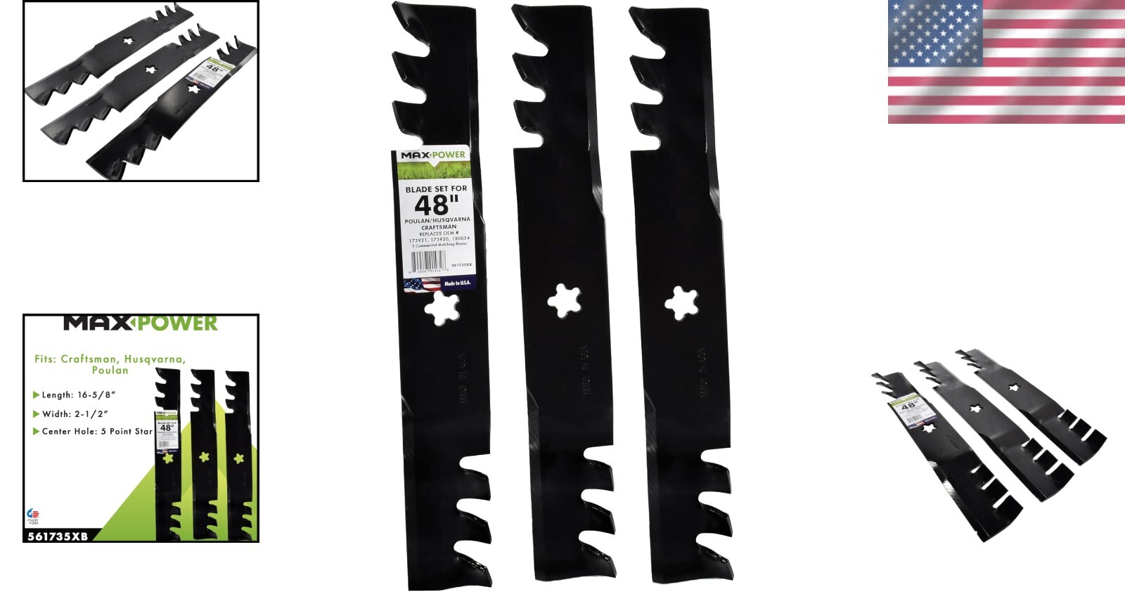 3 Blade Commercial Mulching Set for 48-inch Mowers Replaces OEM no. 173921 ‹ › ‹ › ‹ › ‹ › ‹ › ‹ › ‹ › ‹ › ‹ › ‹ › 3 Blade Commercial Mulching Set for 48-inch Mowers Replaces OEM no. 173921 Upgrade your lawn care experience with our 3 Blade Commercial Mulching Set, designed specifically for 48-inch cut mowers manufactured by Craftsman, Husqvarna, and Poulan . Features: Includes three commercial-grade mulching blades for optimized cutting. Each blade measures 16-5/8 in. L and 2-1/2 in. W. 5 point star center hole ensures a secure fit with your mower. Manufactured to meet or exceed all OEM specifications. Coated with a protective powder during manufacturing, ensuring longevity and durability. Precision sharpening during production ensures excellent cutting performance right from the first use. Benefits: Enhanced mulching performance with greater cutting surfaces. Sharp cutting teeth facilitate precision cuts, leading to a healthier lawn. Centrifugal air lift design promotes uniform chopping distribution for even mulching across your lawn. Made in the USA, embodying quality craftsmanship. Why Choose Our Mulching Blades? Transform your mowing experience with blades that not only cut grass but enhance lawn health through superior mulching. Our 3 Blade Commercial Mulching Set is engineered to elevate your mower's efficiency and ensure your grass is evenly distributed for a more polished finish. Proudly made in the USA and crafted to meet the highest standards, these blades are your go-to choice for robust lawn care. Make the smart choice for your mower and your lawn—order your 3 Blade Commercial Mulching Set today! Shipping Free & Fast Shipping - We offer free shipping to most of the USA with a normal delivery time of 3-7 days. However, due to the current situation, additional delivery time (up to 3 weeks) may be required for some items. Alternative Carriers - We may use alternative carriers (e.g. USPS, FedEx, UPS, etc.) to ensure your package arrives safely and on time. Due to the use of multiple carriers, we are unable to provide a tracking number automatically. Handling Time - Orders are processed and shipped within 1-2 business days of receiving cleared payment. Shipping Restrictions - Shipping to Alaska, Hawaii, Puerto Rico, Guam, and other US territories may incur shipping charges or delivery restrictions. Please contact us before ordering, or your order can be refunded/cancelled. State Restrictions - There may be restrictions based on your state of purchase. For example, certain items may not be shipped to California due to state regulations. Contact for Tracking Updates - If you require tracking updates or have any concerns about the delivery of your order, please feel free to contact us, and we will be happy to assist you. Return 30-Day Hassle-Free Returns - We want you to be completely satisfied with your purchase. If you are not, you can return the item within 30 days of receiving it for a full refund or exchange. Easy Return Process - To start a return, simply contact us and we will provide you with a prepaid return shipping label and detailed instructions. Restocking Fee - There are no restocking fees for returns. However, the buyer is responsible for return shipping costs if the return is not due to a seller's error. Refund Processing Time - Refunds will be processed within 5 business days of receiving the returned item in its condition. Payment We accept all major credit cards, PayPal, and Apple Pay for your convenience. Your payment information is secure and encrypted to ensure a safe and seamless transaction. Please complete your payment within 3 days of purchase to avoid any delays in shipping. Feedback Your feedback is extremely important to us. We strive to provide the best products and customer service possible. If you are satisfied with your purchase, please take a moment to leave us a positive review. If you have any concerns or issues with your order, please contact us before leaving negative feedback. We are committed to resolving any problems and ensuring your satisfaction. Contact Us If you have any questions or concerns, please feel free to out to our customer support team. You can contact us through the eBay messaging system. We are available Monday to Friday, 9:00 am to 5:00 pm EST, and we will do our best to respond to your inquiry within 24 hours. Buy it now and enjoy a pleasant shopping experience! Unit Quantity: 3 Compatible Brand: Lawn Mower Blades Material: Steel,Powder Coating Compatible Model: For Craftsman,For Husqvarna,For Poulan Type: Blade Number in Pack: 3 Power Source: Manual Item Diameter: 48 in Color: Black Item Weight: 2.61 lb Unit Type: lb