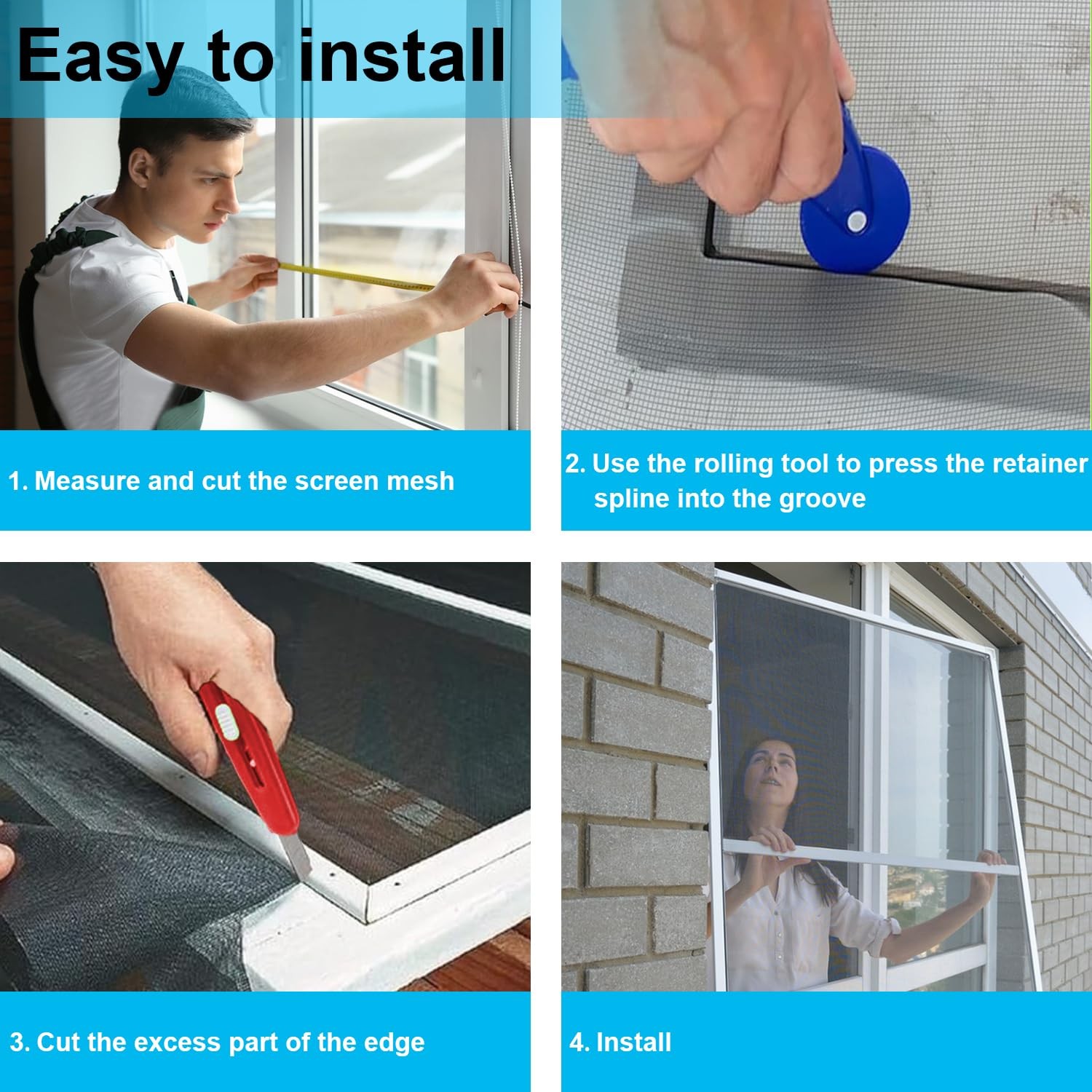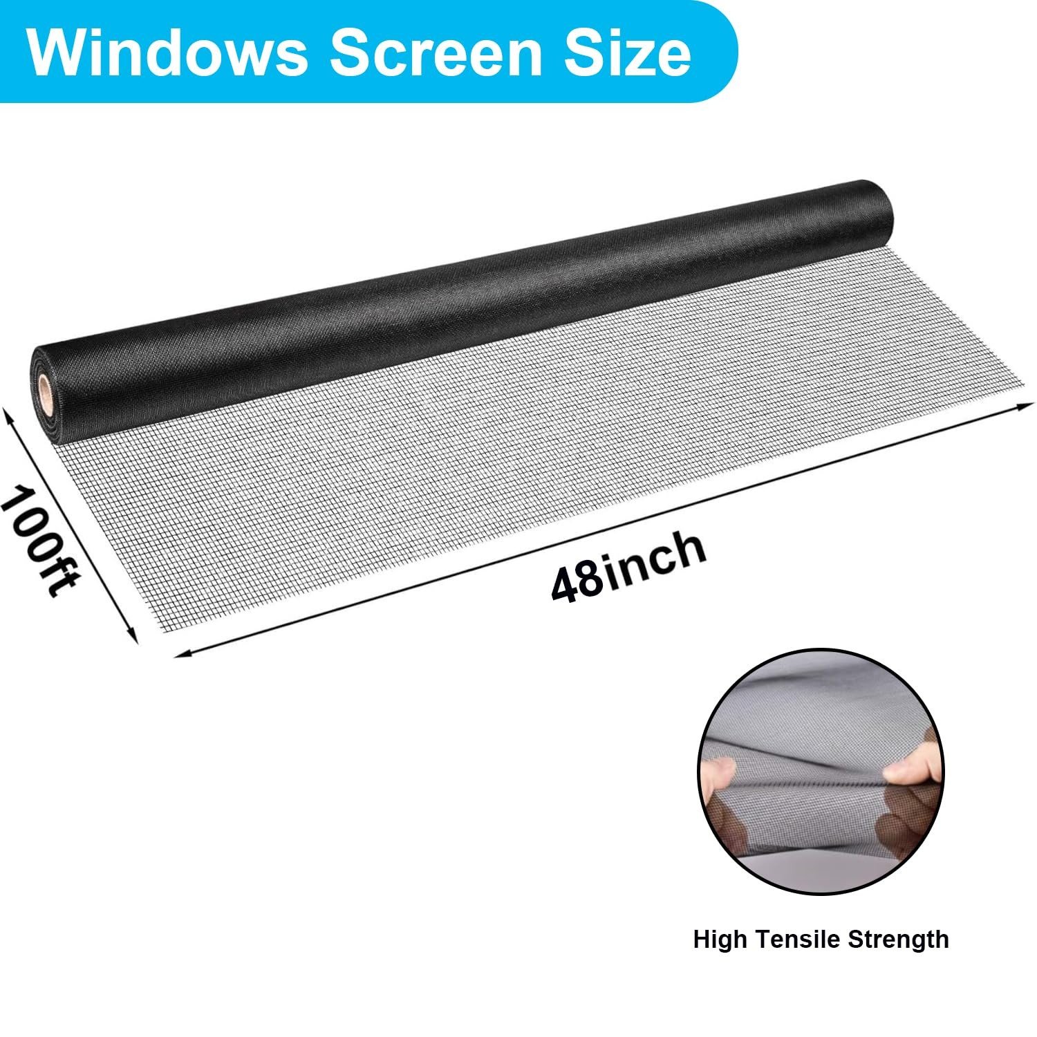 Window Screen Replacement, Window Screen Mesh, 48 in x 100 ft DIY Adjustable Window Screen Durable Fiberglass Mesh Roll Screen Door Mesh for Window, Patio Screen, Porch Screen, or Door - Black Durable Construction: The screen door mesh is made of upgraded fiberglass,ensuring durability and resistance to wear and tear. Patio screen mesh effectively keeps out insects while allowing fresh air to flow through. Enjoy peace of mind knowing your family is protected from bugs without compromising ventilation. Weather-Resistant: Our pet proof window screen is built to withstand extreme weather, this cat proof window screen resists rust, corrosion, and UV damage. Whether it’s rain, wind, or sun, window screen repair kit remains intact and functional. Protect your home year-round with a screen that stands up to the elements. Simple Installation: This window screen mesh is designed for easy installation, making it perfect for DIY enthusiasts. Screen for windows flexible yet sturdy structure fits most window frames seamlessly. Say goodbye to complicated setups and give your windows a new look! Enhanced Airflow and Clarity: Our fine mesh window screen offers superior airflow while maintaining clear visibility. The tightly woven design keeps even the smallest insects out, ensuring a comfortable indoor environment. Experience the perfect balance of fresh air and unobstructed views. Versatile Use: These fiberglass mesh are ideal for a variety of applications, including patio screens, porch screens, pool enclosures, garden barriers, sliding doors, entry doors, front doors, pet enclosures, French doors, and greenhouse doors. Window screen roll is also perfect for DIY projects, offering flexibility for any screening need.