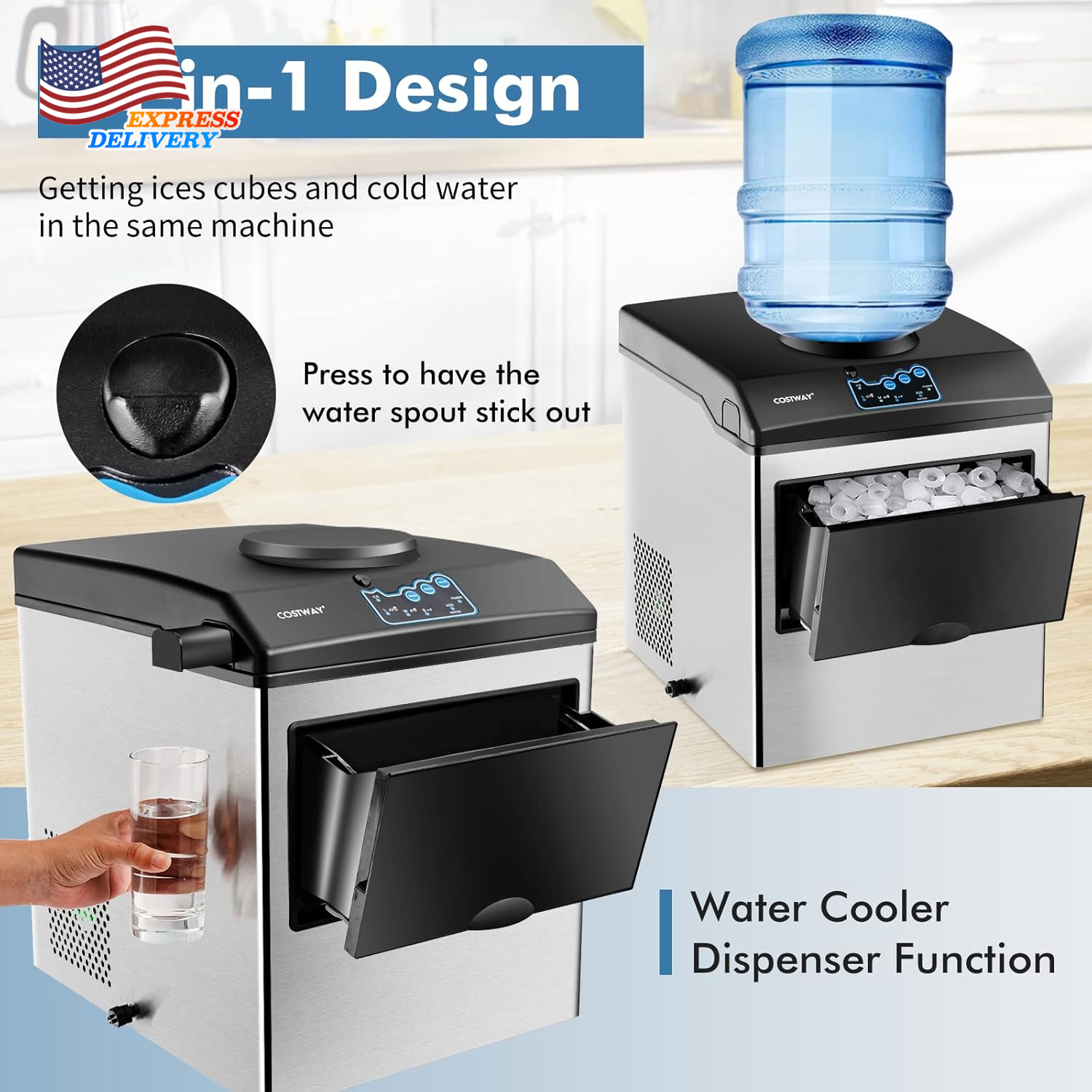 Store New Arrivals Add to Favorite View Feedback Contact Countertop Ice Maker Built-In Water Dispenser 48LBS per Day S/M/L Size Ice Cube Description Item model number 10074US-CYPF Capacity 48 Pounds Product Dimensions 14"D x 17"W x 17"H Country of Origin USA Wattage 1.84E+3 π§[2-in-1 Ice Maker and Water Dispenser] This 2 in 1 ice maker machine is equipped with extendable water spout, which can meet a variety of ice making needs and water cooling. It is convenient to let you enjoy delicious iced food and water at any time. π§[Generous Ice Production] Our countertop ice maker has a fast ice-making cycle that can last 6-10 mins. It guarantees a generous 48 LBS of fresh ice cubes each day. Melted ice can be recycled and reused for the next cycle of ice making. Its ice basket has 5 LBS ice storage and is detachable. π§[High-Quality Stainless Steel Ice Maker] Protected by a 3-layer shell, this water ice maker is of great quality. The premium compressor creates a quiet ice-making environment that will not disturb your daily activity. Besides, an ice scoop is included. Ice maker dimension is 14β x 17β x 17β (L x W x H). π§[Continuous Water supply & Manual Injection] Featuring a top base to load 2-5 gals of bottled water (not included), this ice maker guarantees a continuous water supply with unattended operation. Besides, you can also manually add water from the top base or remove the ice basket and pour the water into it. The top base has a lid to prevent dust. The water tank has a 2L capacity. π§[Easy to Use Button Control with Safe Indicator] You can turn on the ice maker and choose the ice size from small, medium and large through a button control panel. The water-shortage and ice-full indicators will remind you to add water and remove the ice to save energy and electric bills. Please remove the protective blue film before using the ice maker. Product Description ABOUT US We offer the best prices around on high quality products. Our E-store includes media such as books, movies, music and games while offering electronics, toys, sporting apparel, clothing, tools, general home, garden items and more. SHIPPING We are always working hard to ensure your package arrives as soon as possible. Please understand that some factors like weather, high postal traffic, and the performance of shipping companies are outside of our control. We offer free shipping to the lower 48 states and ship within 2 business days of payment, usually sooner. We do not accept P.O. Boxes. Please provide a physical address. For shipping outside of the continental USA, we only use eBay's Global Shipping Program.The item is shipped to KY and then sent to the rest of the world. International customers are responsible for all duties and taxes. Continue to check out in order to calculate costs for shipping the item to your country. Messages regarding eBay's Global Shipping Program MUST be directed at eBay EXCLUSIVELY. RETURNS We offer a 30-Day Return Policy on items which you are not completely satisfied with. You have the option for a full-refund or an exchange of the item. No returns are available on items shipped outside of the USA. PAYMENT We accept PayPal. CONTACT US This page content is yet to come Please ad us to your favorite seller and visit again later Thank You CUSTOMER SATISFACTION We try our very best to make sure every customer is completely satisfied. If there's a problem, message us! We're happy to help. WE ACCEPT Copyright Β© 2021 AutoDS. | All Rights Reserved