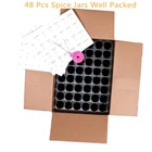 48 Pcs Glass Spice Jars with Labels and Black Lids 4oz Spice Container Set Seasoning Bottles with Blank and Printed Labels, Shaker Lids, Collapsible Funnel and Brush Included ALL ACCESSORIES ARE IN ONE PACKAGE:Include 48pcs spice jars with black lids, 48 shaker lids, totaly 214 labels of 3 dofferent types, 2 brushes, 1 Chalk Marker and 1 collapsible silicone funnel for refilling. All accessories you need are in one pack, no need to purchase anything else. DOUBLE-LAYER LID DESIGN: The spice jars are designed with double-layer lid. The inner layer is 2-in-1 lid for pouring out granulated spices and herbs on one side and sprinkling powdered spices on the other. The outer layer is black airtight metal lid to keep the spices fresh and dry. HIGH QUALITY GLASS JARS: The glass spcie jars with square shape are BPA-Free and Lead-Free, which is made of food grade glass. Its high-transparency body make you easy to see what’s inside and how much is left directly. DIASHWASHER SAFE: Our glass spice jars are easy to clean and dishwasher safe. In addition we recommend handwashing the Metal lids. What’s surprising, we have prepared blank labels for you to write on beside the common spice names in the package, which can stick on the body side or on the top to give the perfect identifying and different modern touch. MAKE KITCHEN NEAT: Our empty glass spice jar is suitable for any spice rack, cupboard, organizer and drawer, and the label can help you distinguish the different spice. Let's abandon the messy and unnecessary packaging of seasoning. Let a variety of seasoning more neat and beautiful to display in your kitchen while do not have to look for different seasonings or worry about pouring and shedding. No longer live with messy kitchen stuff and turn yourself into a tidy, neat and clean lifestyle.