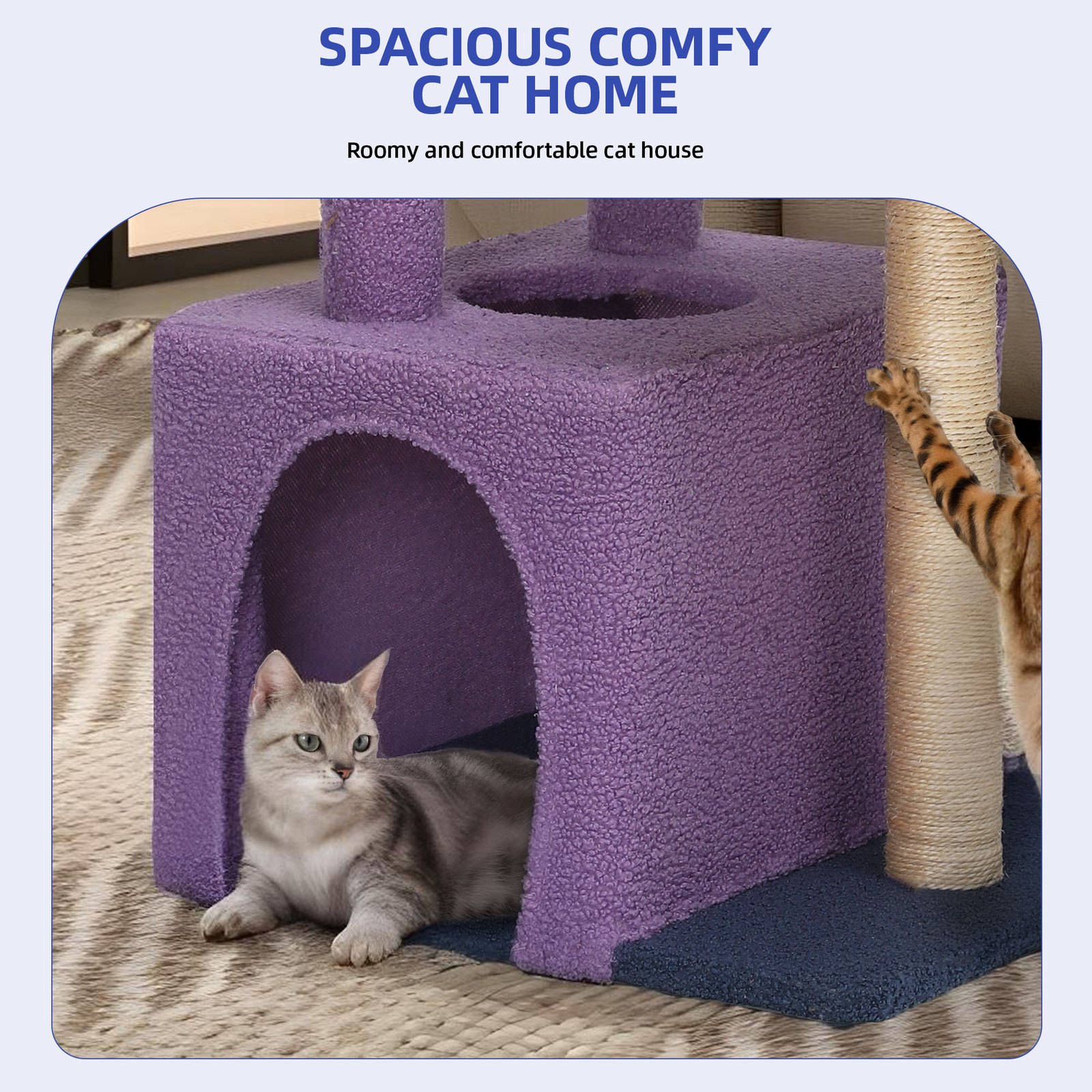 48" Cat Tree Tower Large Purple Kitty House Top White Perch w/ Scratching Post Product Description NOTE: Professional Installation would be Highly Recommended. Description: 1. Color: Purple White 2. Material: Particle Board, Plush Fabric, Sisal Rope 3. Pet Type: Cat, Kitty, Ferret, Parrot, Squirrel 4. Ideal for: Activity Center, Playing Center, Scratching Posts, Resting Posts, 5. Room Type: Entryway, Bedroom, Foyer, Home Office/Study, Hallway, Living Room 6. Special Features: Scratching Posts, Kitty House, Ladder, Top Perch, Wide Base Plate Features: 1. Purr-fect Paradise: Watch your cat's curiosity come alive in this multi-level paradise. Featuring cozy perches , a spacious condo , and hidden nooks for exploration, our cat tree offers endless opportunities for play and relaxation. Let your pet's imagination run wild as they climb, nap, and play in their own floral wonderland. 2. Naptime Nirvana: Give your cat the gift of ultimate comfort with our plush-filled perches designed for luxurious catnaps. Whether they're basking in the sun-drenched petals or curling up in the cozy condo, your pet will find solace and serenity in their own cozy corner of the Petal Haven Cat Tree. 3. Sturdy Stems, Safe Haven: Rest assured that your pet is in good hands with our sturdy and stable design . The reinforced structure and secure base ensure that even the most spirited of feline acrobatics are met with safety and stability, allowing your cat to explore and play with confidence. 4. Effortless Elegance: Assemble your Petal Haven Cat Tree with ease, thanks to our simple instructions and hassle-free setup . Create a captivating and functional space for your pet in no time, and watch as they blossom with joy in their very own floral retreat. Dimensions: 1. Product Dimensions: 17.7'' (L) x 17.7'' (W) x 48.4" (H) 2. Top Perch Size: 11.8 Inch 3. Ladder Size: 11.8" (L) x 6.2" (W) 3. Overall Product Weight: 19.5 lbs. 4. Weight Capacity: 15 lbs. Package Included: 1 x Cat Tree 1 x Accessory Kit 1 x Manual Book Shipping 1. Normally the item will be dispatched within 1 business day if payment is cleared before 12pm PST. 2. Please verify the correct shipping address in your PayPal account before making the payment. 3. We only dispatch the item to the address that is sent to us at the time of checkout. 4. We don't ship to Hawaii, Alaska, Puerto Rico, APO/FPO/PO Boxes. 5. We don't provide local pick-up service. 6. Normally we will use USPS, UPS, FedEx & LTL to dispatch items. Payment 1. We accept PayPal and credit card. 2. We will ship to the confirmed Paypal shipping address that is provided with the payment only. Return 1. 30 days Money Back Guarantee. 2. Please contact our customer service to receive a RMA form first if want to return the item. 3. All returned items MUST in new condition with the original package. Contact If has any problem, please contact us by sending an ebay message. Our customer service will resolve the problem as soon as possible. On Dec 11, 2024 at 01:01:10 PST, seller added the following information: On Jan 31, 2025 at 01:37:51 PST, seller added the following information: On Feb 12, 2025 at 18:32:32 PST, seller added the following information: