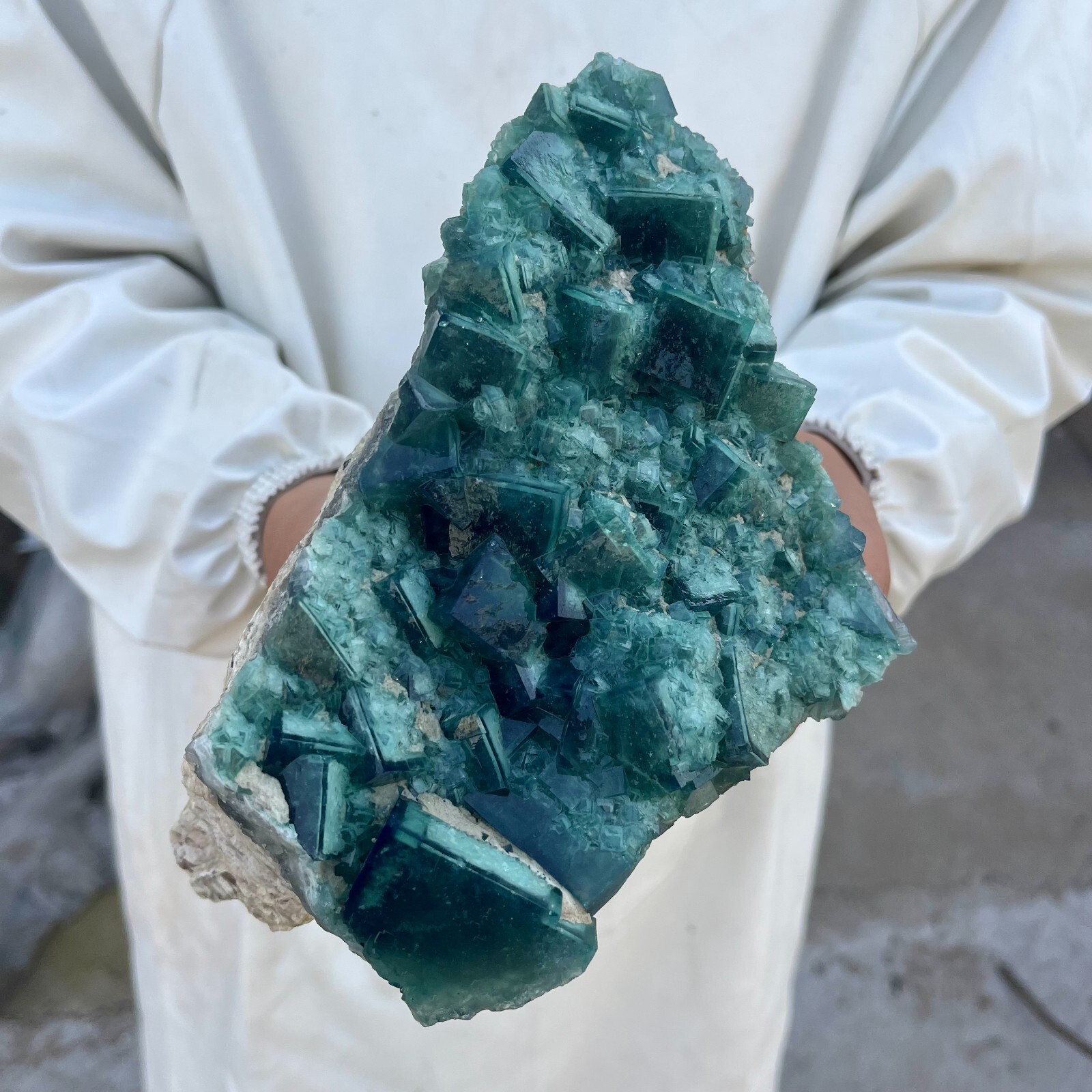 590g Natural Green Fluorite Cube Quartz Crystal Cluster Mineral Specimen