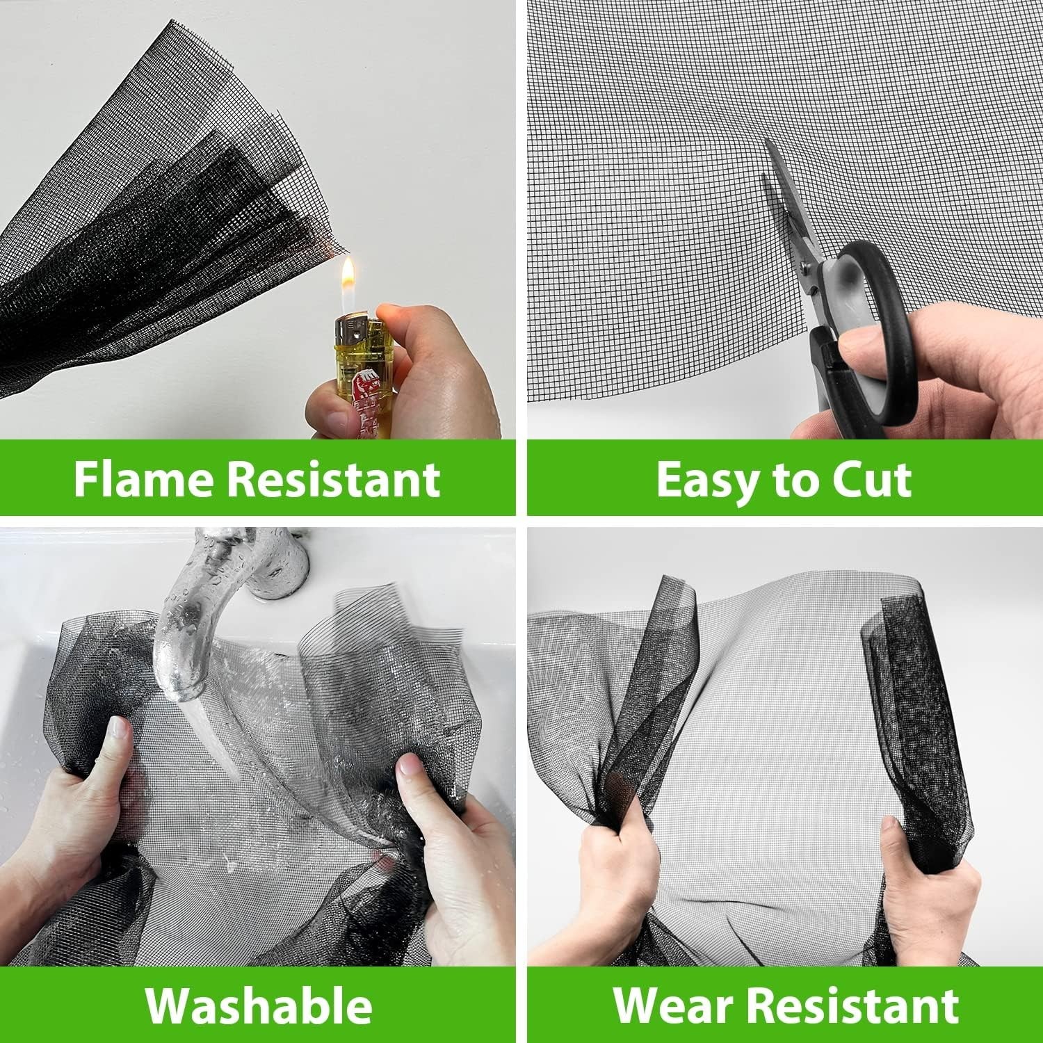 Windows Screen and Screen Door Repair Kit, 48"X118" Charcoal Fiberglass Mesh wit