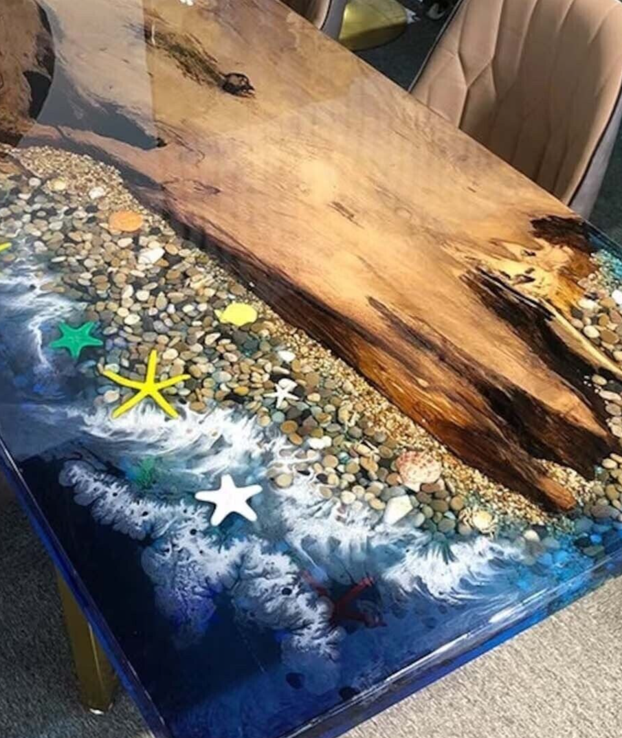 $ 2188.5660-Inch Ocean Wave Epoxy Resin Dining Table Wood Kitchen Slab Decor