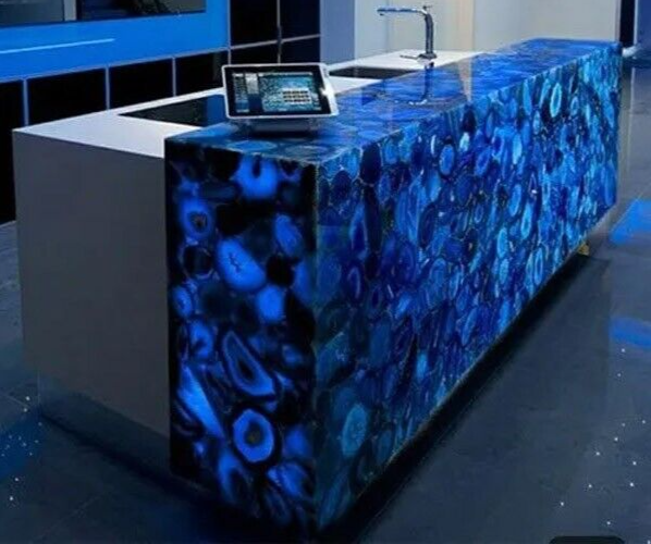 Welcome To Stone-Craft- Creations Shop Description Very unique Art by Indian Artist ,Coffee/Side Table top Used Material: Natural Agate Stones Arts Size: 48"x24" Inches Color: As Photo Shape: Rectangle Pattern: Handmade Room: Bedroom, Dining Room, Hallway, Home Office/Study, Kid’s Bedroom, Kitchen, Laundry/Utility Room, Living Room,Patio, Playroom Packaging: Wood & Foam Export Packing Shipping: Air Can Be customize ,Please Message us your desired Size 1. It can be used as a Dining Table, Guest table, coffee table, center table top in show room as well as a gift for your loved ones. 2. The table top is made in Agra India & fully handmade. 3. The top will be delivered by FedEx or DHL free of cost door to door. 4. If there is any local tax,custom duties or Vat will be paid by the buyer at the destination. 5. The parcel is dispatch with proper packing & fully insured covering all kind of risk. 6. To maintain the table top is simple soap & water & dry cotton cloth. 7. If You Are Looking Something Customize, Let Us Know We Will Make For You As Per Your Design, Size & Shape. 8.Table top does not includes any wooden, marble stand or base if you like to buy marble or wooden base or stand that will be charged extra. Marble Agate Table Tops We are Manufacturer & Exporter of marble agate table tops. These marble agate table tops have different shapes like Round Table top, Octagonal Table Tops, Rectangle / Dining table tops, Square Table tops, Chess Table tops, Taj Mahal Table tops, Custom Designs Table tops also make marble Table top Base and Stand. Then we can be used as dining tables, coffee tables, Center tables, conference tables, chess boards, reading tables, bar tables , Garden table, side and corner tables or any other use as per the indoor and outdoor decor. They can also be placed outdoors in the garden, as marble is stain free, offers great resistance to the forces of nature, and can withstand heavy temperatures. We also meet customized requirement and offer our marble table tops at industry leading prices. About Agate Stone- Agate is a rock consisting primarily of cryptocrystalline silica, chiefly chalcedony, alternating with microgranular quartz. It is characterized by its fineness of grain and variety of color. Although agates may be found in various kinds of host rock, they are classically associated with volcanic rocks and can be common in certain metamorphic rocks. Ancient use of agate stone Agate is one of the most common materials used in the art of hardstone carving, and has been recovered at a number of ancient sites, indicating its widespread use in the ancient world; for example, archaeological recovery at the Knossos site on Crete illustrates its role in Bronze Age Minoan culture Types Of Agate 1. Fortification Agate This is the most common and distinctive type of agate. In these agates, bands crystallized into concentric layers that more or less follow the shape of the cavity. The banding resembles an aerial view of a fort 2. Water-Line Agate (also called water-level or onyx) During its formation, silica-rich solution either entered the cavity slowly laying one band at a time, excess water drained out leaving a small amount of silica to settle out into separate bands, or the vesicle filled under low pressure. In any case, the silica crystallization in water-level agates is controlled by gravity in one orientation, forming a stack up of parallel bands. 3. Shadow Agate Some agates exhibit a shadow effect in which there is what appears to be movement across the agate layers when the specimen is rocked back and forth (or your orientation to the specimen moves). This optical effect only occurs when there are alternating translucent and opaque bands. It is caused when light goes into the agate, but is not reflected out. 4. Tube Agate Tube Agate During the formation of some agates, parallel projections of tiny hair-thin mineral rods grow first within the silica gel, around which later the chalcedony agate micro-crystals form. In some cases the inclusions remain, but sometimes they weather away leaving hollow tubes that subsequently fill in with silica. 5. Eye Agates This mysterious agate characteristic is believed to be formed when most of the silica gel drains from the cavity, leaving only a droplet that “beads up” on the inside wall of the cavity. This droplet crystallizes into solid chalcedony “eyes”. In some cases, crystal growth will continue from this droplet in a manner similar to the formation of stalactites in caves. Later, the pocket fills in with the usual deposition of chalcedony microcrystals. 6. Plume Agate These agates initially had formations on their outside layer that formed prior to the deposition of chalcedony bands. They are filament growths of mineral inclusions that resemble ferns or feathers. 7. Geode Agate Geode Agate In some cases the supply of silica-rich water runs out before the entire cavity fills in. When there is a hollow center within a crystalline outer fill, the specimen is considered a geode. Not all geodes have agate banding, but many do. Also, the inner layers can form into several different types of silica mineral crystals and may even have other types of mineral crystals. 8. Moss Agate Moss Agate Moss agates have clusters of mineral inclusions that resemble plants, trees, or landscapes. Most moss agate inclusions are comprised of iron or manganese oxide. In some cases, the inclusions inhibit chalcedony banding allowing the mineral clusters free reign to grow within the silica gel. 9. Seam Agate Seam agates for in cracks within host rock, rather than in rounder pockets. The bands form in parallel rows that follow and fill in the crack or seam.