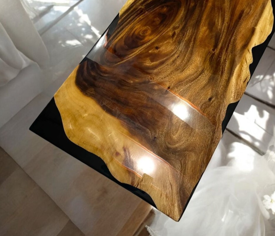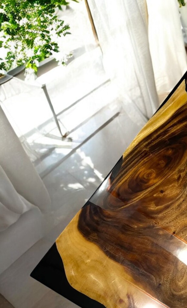 Personalized: Yes Pattern: Handmade Required Tools: No Tools Required Item Height: 28.5" Inches Care Instructions: Clean with Dampen Cloth Character Family: NA Theme: NA Model: Dining Table Maximum Length: NA Additional Parts Required: No Type: Dining Table Material: Resin Tabletop Material: Wooden Shape: Rectangle Minimum Width: NA Character: NA Features: Live Edge Wood Item Width: 24" Inches Color: Black Country/Region of Manufacture: India FSC Certified: No Item Length: 48" Inches Maximum Width: NA Tabletop Thickness: 35mm Brand: tabletopsgallery Style: Art Deco Personalize: Yes Minimum Length: NA Finish: Polished Department: Adults Indoor/Outdoor: Indoor & Outdoor Year Manufactured: 2024