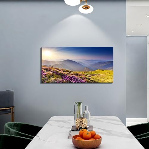 Return Policy Fast Delivery Trusted seller Nature Scenery Wall Art Landscape with Flowers and the Sun Mountains Pictures Painting Print on Canvas Modern Artwork Ready to Hang Wall Decor for Living Room Bedroom Bathroom Office 48" x 24" Product Description Mountain Wall Art Size: The canvas panel measures 48" W x 24" H (120 x 60 cm) Mountain Wall Decor: Suitable for various spaces such as the living room, boys' or girls' bedroom, bathroom, bedroom, classroom, dining room, dormitory, home office, kids' room, kitchen, laundry room, office, hotel, restaurant, bar, family room, man cave, dorm, apartment, bar, baby nursery, and more Great Gift Ideas: Can be given as gifts to relatives and friends for anniversaries, Thanksgiving, Christmas, Mother's Day, Father's Day, Halloween, birthdays, weddings, Valentine's Day, and more Easy to Hang: The scenic mountain canvas print is stretched on a wooden frame, with metal hooks mounted After-Sales Promise: Just contact us by e-mail if any problems or concerns with our canvas art prints, we are always for you Shipping Returns Payment Shipping Shipping is FREE to all addresses other than APO/PO boxes in the lower 48 states. All our stock ships from US-based warehouses. Shipped via USPS or UPS (depending on location and package weight) Unless stated otherwise, all orders will ship within 24-72 hours of your payment being processed. Check our feedback to see the great reviews of FAST shipping we offer. Returns Seller does not accept returns Payment We currently accept payment via eBay managed payments only. Once payment is cleared, we will dispatch your shipment within 1-3 business days. Please refer to the "Shipping" tab for more information regarding shipping speed to your destination.