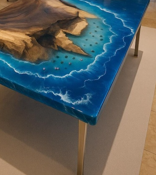 This gorgeous epoxy river table is a true showstopper! The rich walnut wood paired with the vibrant resin river creates a mesmerizing ocean wave effect, perfect for gaming, work, or as a statement piece. The sturdy build and sleek modern design make it ideal for any space—whether a home office, hotel lobby, or gaming setup. The 28.5" stand height is just right for comfortable use, and the 48"x30" surface offers plenty of space. Love how the colored pigments catch the light, adding depth and artistry. Functional, stylish, and built to impress—this table is a fantastic investment!