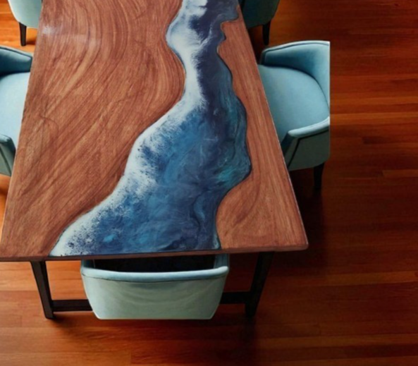 Absolutely stunning piece! The ocean wave epoxy flows beautifully through the natural wood grain, creating a unique focal point for our dining room. The craftsmanship is top-notch, and the custom process made it feel truly special.