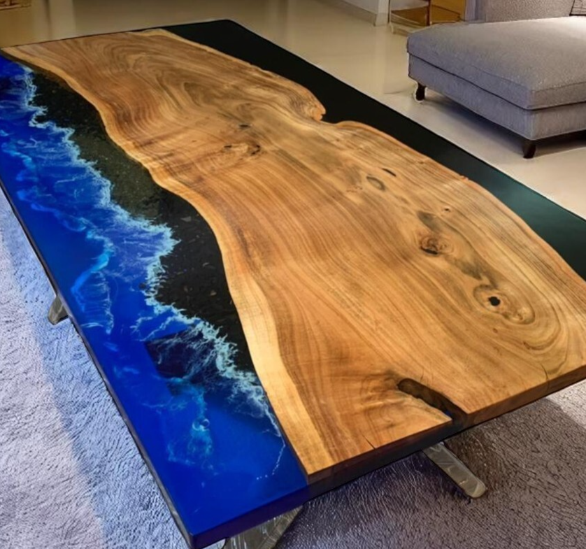 Table Size: 48"x30" Inches Stand Size: 28.5" Inches Tall This stunning Epoxy Resin Gaming or Trading Desk is crafted with premium walnut wood and enhanced by coloured pigments for a striking resin river design. A brand-new addition, its contemporary style makes it an elegant and functional centrepiece for any space. Whether for work, gaming, or relaxation, this versatile table combines modern aesthetics with practical use, offering a unique charm to your home or office. Features & Uses: Multi-functional design, ideal as a dining table, coffee table, side table, end table, or corner table. Perfect for homes, villas, hotels, corridors, halls, and other interior or exterior decorative spaces. An excellent choice for gifting to friends and family. Personalization: We welcome customization requests for size, shape, or design. Additional charges may apply for personalisation. Important Notes: As these tables are handmade using natural wood and resin, variations in colour, texture, and finish may occur, making each piece unique. Props and accessories in the photos are for illustrative purposes only and are not included in the purchase. Custom duties, VAT, or local taxes, if applicable, are the responsibility of the buyer. Shipping & Packaging: Shipped via trusted carriers like DHL and FedEx. Securely packaged in sealed wooden crates with foam padding for safe delivery. We do not ship to PO Box addresses and require a firm or business name for Russia and Brazil shipments. Care Information: Clean with a soft, damp cloth to maintain its glossy finish. Avoid placing hot items directly on the resin surface. This made-to-order table is crafted with care and precision to enhance your space with timeless style. Contact Us: For any queries or assistance, feel free to get in touch. We’re happy to help! Thank You & Happy Shopping!