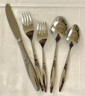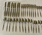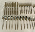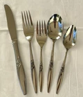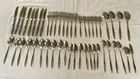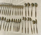 This listing is for the lot of 49 pieces mixed lot in "Highland Rose " design by Oneida under 1881 Rogers, made in the U.S.A. They have marking of "1881 ® ROGERS ® STAINLESS ONEIDA LTD". Knives do not have marking. These are all made in the U.S.A. These are in silver-tone stainless steel flatware. Any other colors are just light reflection. The lot includes the following: • Dinner Knife - 8 • Dinner Fork - 8 • Salad Fork - 6 • Table Spoon - 9 • Tea Spoon - 8 • Iced Tea Spoon - 4 • Butter Knife - 1 • Sugar/Jan Spoon - 1 • Serving Spoon - 2 • Pierced Serving Spoon - 1 • Serving Fork - 1 Total: 49 pieces Weight is about 3 lbs 12 oz. Condition is previously owned and used but excellent and mint as shown. I do not wish to take return, so please review photos and ask all the necessary questions before purchasing this item. A $1 bill is placed for size reference and not included. * * * Non-smoking environment! * * *