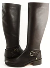 New/ clearance in orignal box ( lid from box cracked ) Soft leather upper; Rubber sole; Textile lining Stacked heel measures 1 1/2" Boot shaft 15" calf circumference 14" * Decorative Antique gold tone buckle and stud detail Lightly padded footbed Zipper side for easy on/ off Rounded toe design *Measurements are hand taken for every item we sell. Every item is carefully inspected to ensure that you receive a quality product. Designer Shoe Box guarantees this product is 100% Authentic