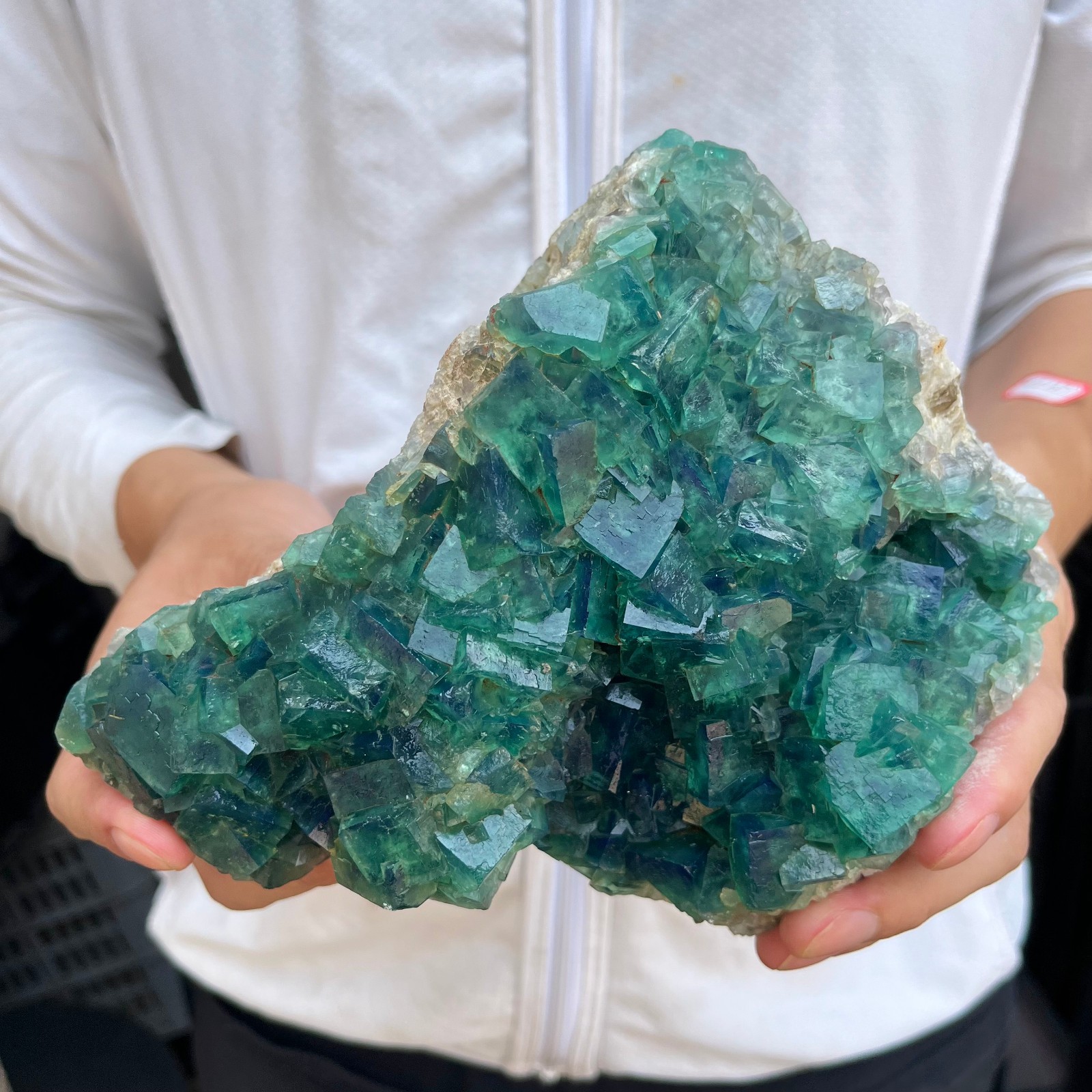 15.8LB Natural Green Fluorite Cube Quartz Crystal Cluster Mineral Specimen