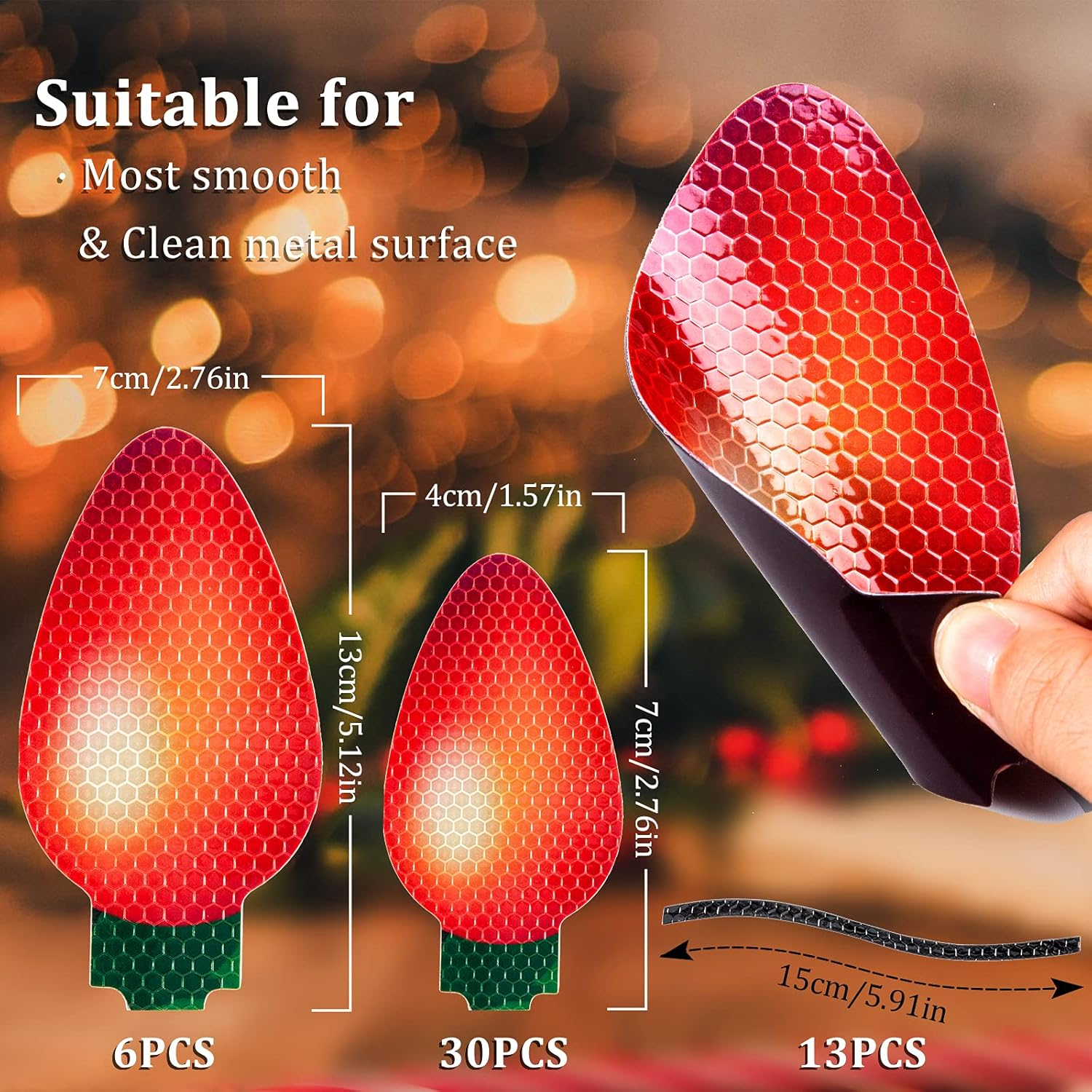 Store New Arrivals Add to Favorite View Feedback Contact Fast deliveries to the customer's home Quality customer service John Make the customers happy! 49Pcs Christmas Reflective Car Magnets Set 36 Colorful Bulb Light Magnets with 13 Lines Refrigerator Garage Magnet Decals for Xmas Birthday Mailbox Window (Not for Aluminum Alloy Vehicle) Description What You Will Get - 36pcs bulb light shaped magnets and 13pcs line shaped magnets are included in the package, 49pcs in total, sufficient for your holiday decoration. Rich Varieties - Designed with bulb shapes, the reflective magnets have 6 colors, yellow, pink, purple, blue, red and green, bright and vivid colors that will colorful your home and party, creating warm and joyful atmosphere. Reflective - Made of good quality PET seamless honeycomb reflective film, providing high visibility of reflections at night to improve safety. 2 Sizes - 6 large bulb magnets, each one is 7 x 13cm/2.76 x 5.12 inch, and 30pcs small bulb magnets, each one is 4 x 7cm/ 1.57 x 2.76 inch, the combination of large and small can meet your different needs for decoration. The line magnet is 15cm/5.91 inch. Where to Use - Suitable for most metal surface, perfect for your car, garage door, refrigerator, mailbox, magnetic board and so on, and they are adjustable and removable without residue. Notice: some cars have all-aluminum body that the magnetic stickers can't stick on very firmly. And the sticker is easy to stick and remove, be careful not to be stolen!! Product description Features & Benefits: The combination of 6 large bulb magnets, 30pcs small bulb magnets and 13pcs line magnets form a great decoration for car and home decoration. Reflective and removable, our bulb magnets suitable for most metal surface, perfect for your car, garage door, refrigerator, mailbox, magnetic board and so on, creating strong festive and joyful atmosphere. Specifications: Material: PET Color: yellow, pink, purple, blue, red and green Size: shown in the picture Package includes: 36 x Bulb Magnet 13 x Line Magnet Unit Count 1 Count Color Blue,green,red Material PET Item Weight 0.21 Kilograms Shape Irregular Size Large: 7 x 13cm, Small: 4 x 7cm, Line: 15cm Package Dimensions 6.3 x 3.54 x 0.67 inches Number of Pieces 49 ABOUT US We offer the best prices around on high quality products. Our E-store includes media such as books, movies, music and games while offering electronics, toys, sporting apparel, clothing, tools, general home, garden items and more. SHIPPING We are always working hard to ensure your package arrives as soon as possible. Please understand that some factors like weather, high postal traffic, and the performance of shipping companies are outside of our control. We offer free shipping to the lower 48 states and ship within 2 business days of payment, usually sooner. We do not accept P.O. Boxes. Please provide a physical address. For shipping outside of the continental USA, we only use eBay's Global Shipping Program. The item is shipped to KY and then sent to the rest of the world. International customers are responsible for all duties and taxes. Continue to 'check out' to calculate costs for shipping the item to your country. Messages regarding eBay's Global Shipping Program MUST be directed at eBay EXCLUSIVELY. RETURNS We offer a 30-Day Return Policy on items in which you are not completely satisfied with. You have the option of a full-refund or an exchange of the item. No returns are available on items shipped outside of the USA PAYMENT We accept PayPal. CONTACT US This page content is yet to come Please ad us to your favorite seller and visit again later Thank You CUSTOMER SATISFACTION We try our very best to make sure every customer is completely satisfied. If there's a problem, message us! We're happy to help. WE ACCEPT