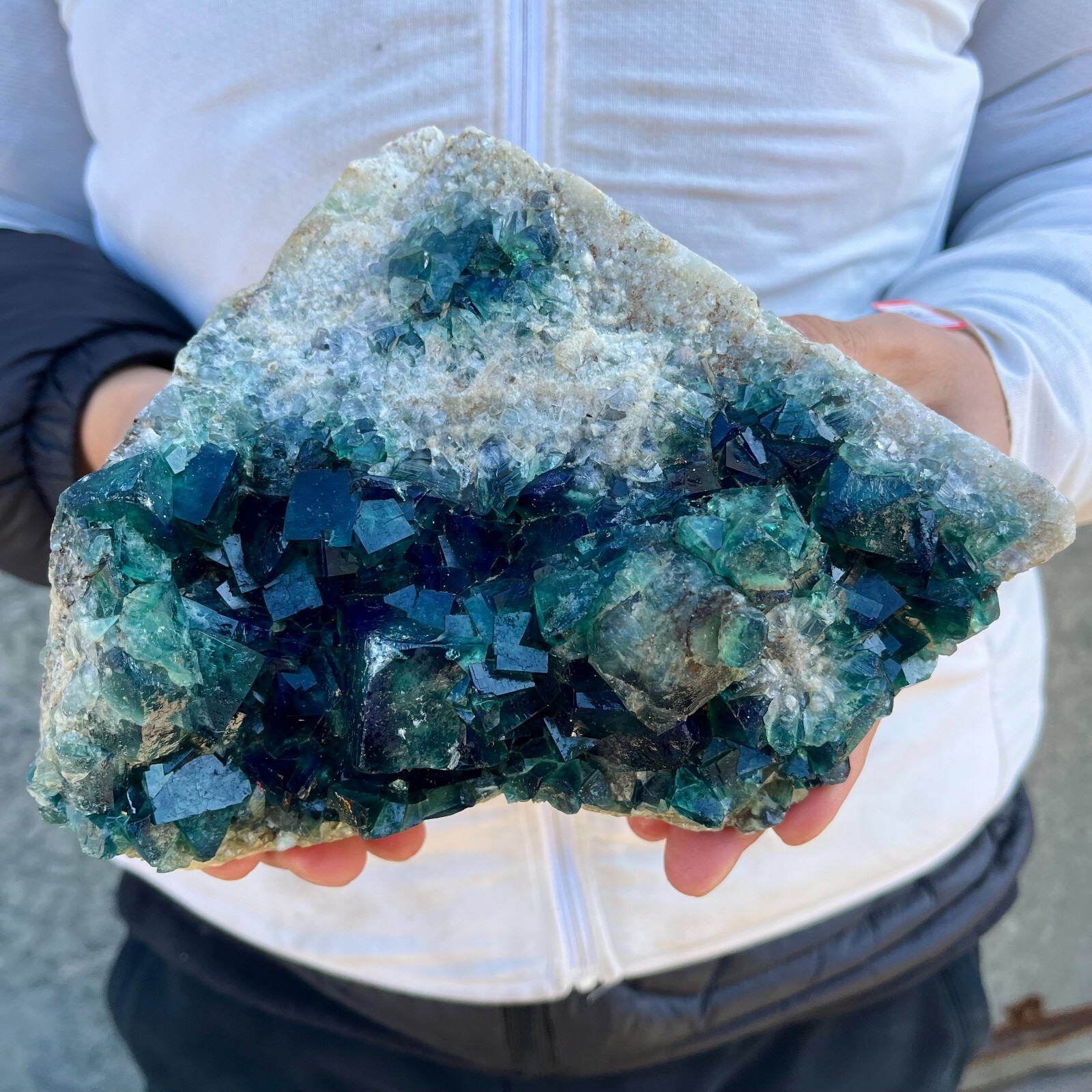 14.7lb Natural Green Fluorite Crystal Cluster for Healing & Energy