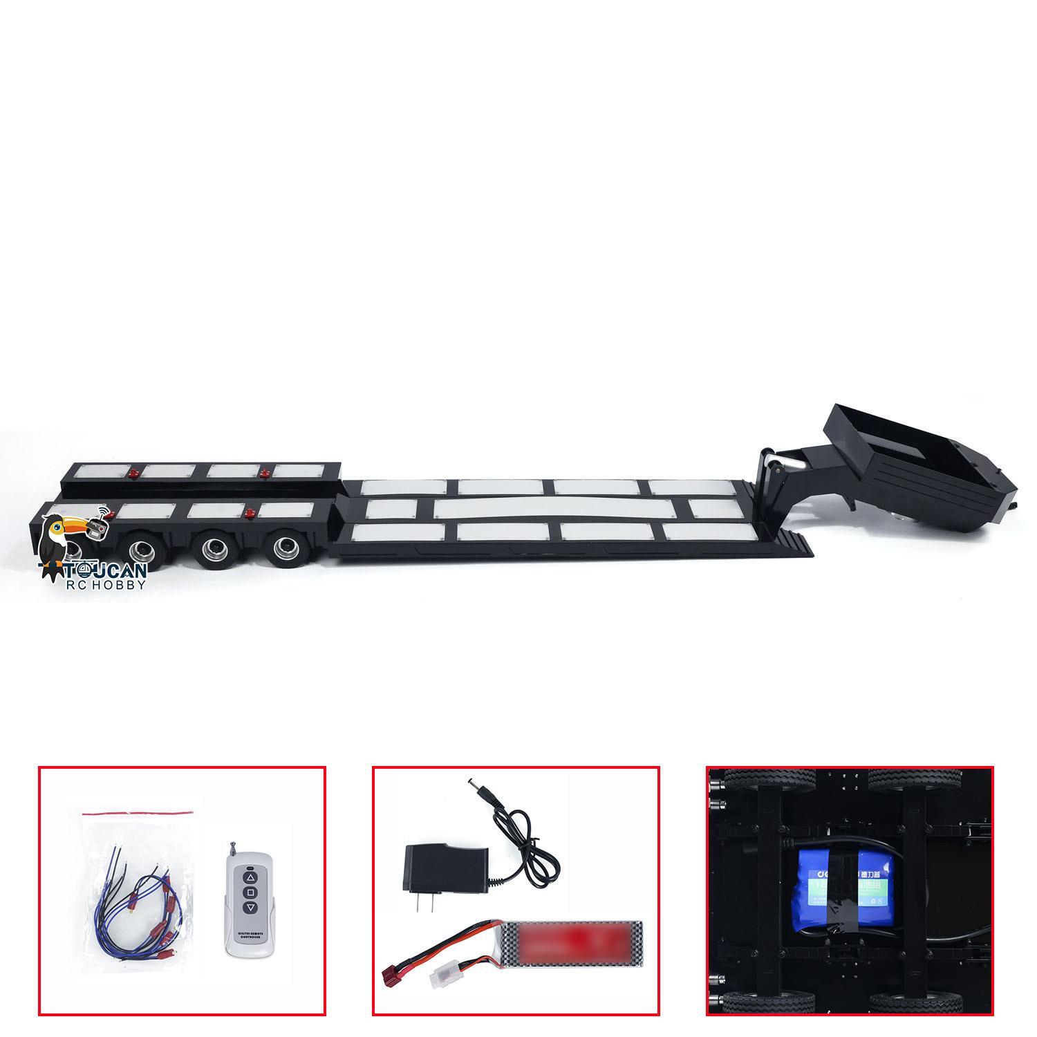 ※4-Axle Metal Extendable Semi-trailer for 1/14 RC Tractor Truck Radio Control Car ※This product is only suitable for toy models and is not suitable for real vehicles. ※Specification: Item Condition: New and Painted Material: Metal Length: About 130cm Width: 21-27cm Scale: 1/14 Suitable For: 1/14 RC Hydraulic Truck Remote Control Dumper Tipper Cars Tractor Car, DIY Models ID: HHG-4Axles-Gooseneck-Extendable-BK ※The Package Includes: 1pc 4-axle Trailer Model Mini Remote Controller and Receiver Rear Light LED (You need to install the light to the trailer yourself) Battery Charger ※The Package Does Not Include: Light System ※If you have any questions or are not sure whether it is the correct item that you want, pls feel free to contact me before purchasing. ※Shipping Policy: 1. We ship to most countries of the world. But if you are from Israel, Brazil, South America, and the Middle East, please contact me first, because sometimes we can not ship to your country because of shipping limitations. 2. Different shipping methods have different transportation timeliness. If you have any requirements on the shipping method, please contact us, and we will provide you with the optimal shipping plan. ※Return Policy: We only wish to deal with a serious buyer. Please don't easily open a dispute or return request if your products got problems. Please contact us, we will help you to solve any problems, and we have professional technicians to provide technical support. ※International Buyers Please Notes Import duties, taxes, and charges are not included in the item price or shipping cost, these charges are the buyers' responsibility. Please check with your country's customs office about the tax before buying or bidding. eBay Cross Border Trade powered by ChannelEffect