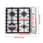 Color: Black Model: Gas Stove Surface: Electric Hot Plate Features: Easy Clean Number of Ovens: 4 Gas Type:: Natural gas Capacity: N/A Type: Gas Cooker Item Depth: Less Than 20 in Installation Type:: Built-In Brand: Unbranded Warranty: 5 years UPC: Does not Apply Product size:: 580×500mm Cut-out size:: 550×470mm Ignition method:: Add a No. 1 battery(Not include in package) Note:: The package not include battery Item location: CA /NJ /Austell MPN: Does not Apply Installation: Drop-In Material: Stainless Steel gtin13: Does not Apply Item Height: Less Than 25 in Number of Burners: 4 shipping notice: Can not ship to Puerto Rico,Alaska/Hawaii Power:: 2.75KW 2×1.75KW 1.0KW Item Width: Less Than 20 in Hood Width: N/A Pot rack:: Iron frame