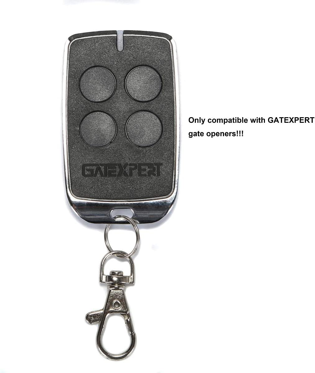 MATERIAL -- Abs plastic shell & metal edging. NOTE--Our remote control is only compatible with the GATEXPERT 433.92MHz gate openers!!!Don't buy it if you are with other brand or other frequency gate openers. ADDING& DELETE REMOTE CONTROLS -- At most 25 remote controls can be learned. SINGLE BUTTON MODE -- The four buttons have the same function, one same button on the remote control to circularly control the main engine OPEN/STOP/CLOSE/STOP. EASY TO PROGRAM AND CARRY -- Small size can be carried around and with only buttons controlling the action of the gate. SERVICE -- Full compliance with Amazon's rules, if you have any questions in the product, we will always be here and help you. Product Description Specification Model RC4B11 Working frequency 433.92Mhz Battery CR2032 Remote range ≥100ft Note One remote control can control four gate openers, but the control boards should be same. COMPATIBILITY--Our remote control is compatible with the gate opener of GATEXPERT,G.T.MASTER, and we can't promise it can also match other gate opener. Feature SINGLE BUTTON MODE -- The four buttons have the same function, one same button on the remote control to circularly control the main engine OPEN/STOP/CLOSE/STOP. The remote contol has four buttons, if button 1 is damaged or insensitive, you can delete the remote controls first, then use button 2, button 3 or button 4 to relearn and control the gate opener. Package Includes Without user manual, you can find the operation method in your gate opener user manual.