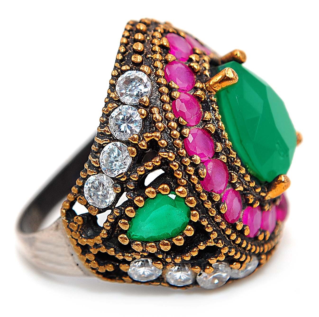 Menu Store FAQ Payment Shipping returns Feedback CONTACT US SHOP BY RING SIZE 4 4.5 5 5.5 6 6.5 7 7.5 8 8.5 9 9.5 10 10.5 11 11.5 All STORE CATEGORIES 99 cent daily deals Auctions Ending Soon New Arrivals Buy it now Rings Pendants Earrings Necklace Bangles & Bracelets POPULAR STONES Aquamarine Ruby Sapphire Pink Sapphire NATURAL TREATED EMERALD Topaz Opal Pearl Amethyst Blue Topaz Kunzite Herkimer Diamond Hand Carved Fossils Citrine Garnet Alexandrite Natural Rough Two-Tone Sterling Silver Store Newsletter Add old-english-silver to your Favorites and receive our e-mail newsletters about new items and special promotions. General Interest Sign Up Gemstone : TREATED EMERALD, RUBY & WHITE TOPAZ Metal : Genuine 925 Solid Sterling Silver Total Carat Wt : 4 Total Gram Wt : 6 Ring Sz : 8 Shipping & Handling