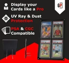 π Showcase Your Collection: This display is perfect for collectors who want to show off their graded cards in style. The sleek and modern design is sure to impress, while the clear front panel allows you to fully appreciate the beauty of your cards. π Easy to Use: You wonβt believe how incredibly user-friendly it is. The clear front panel detaches easily with magnets, so you can quickly add or remove cards as needed. π Maximum Protection: The case is specifically designed to hold PSA and CGC graded cards, ensuring a snug and secure fit. Plus, the black acrylic material provides a sturdy and durable barrier against scratches, scuffs, UV rays and other types of damage. β Satisfaction Guaranteed: We know cards vary in size and offer free returns so your satifcation is guaranteed! This particular product is deisgned to perfectly house PSA or CGC graded cards measuring 5.3125 x 3.15625 x 0.25 inches. π The Perfect Gift - This is a great gift for any trading card enthusiast or collector. It's a thoughtful and practical gift that they're sure to appreciate, especially if they're looking for a way to display their prized collection.