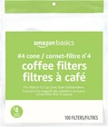 100 white #4 cone coffee filters; fit most 8-12 cup cone coffeemakers Provides superior coffee filtration and eliminates gritty sediment, while allowing the great coffee taste to come through Filters are Compostable* Made in the USA of imported and domestic components If you like Melitta #4 cone coffee filters, we invite you to try Amazon Basics Cone Coffee Filters Alexa voice shopping enabled: to place your next order, just say, “Alexa, reorder Amazon Basics Cone Coffee Filters" 100 White #4 cone coffee filters that fit most 8-12 cup cone coffeemakers. Filters contain 100% plant-based fibers and are compostable*. Made in USA of imported and domestic components. *Filter meets ASTM D6868-11 standard and can be composted where municipal or industrial composting facilities exist. Appropriate facilities may not exist in your area. Check with your local community as to availability.