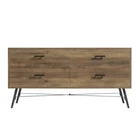 Product Features Sturdy Frame: The dresser is made of high-quality wood which ensures stability and durability. It's also s also resistant against water and scratches, consist with durable drawers slides for long term use. Easily maintain with damp cloth. Also, the storage drawer unit has anti-tipping accessories to prevent incidents. Spacious storage space: There are 4 storage drawers to easily organize your items, Each drawer is 14.4 inches deep, helping to keep your room clean and tidy. The spacious top can accommodate a TV, photo frames and other decorative items. Suitable for Different Corners: The simple and modern chest of drawers has a large storage capacity, allowing it to adapt well to various space environments. Use as a dressing table in the bedroom, a nightstand next to the bed, a closet to store clothes, a storage cabinet in the living room, a toy storage cabinet in the nursery or to store take-out items in the entryway, or even as a dresser TV stand, used to place electronic equipment, etc. Easy Assembly: detailed instruction and tools are included in the package. And all pieces are well labled, it woul be clear to assemble, you'll not get stuck with the assembly. Description X-shaped stabilizing feet Strong steel frame offer stable support and ensure years of use. The stable structure makes it not easy to shake once installed. Durable Surface ·Stylish Rustic Walnut Finish Water-based paint surface, easy to wipeclean. ·Durable Material Designed with durable particleboard andmetal feet ,offering a lasting, stable,and safe Storage space. Product Information Product Type Dresser Color Rustic Walnut Material Particleboard, Metal Exterior Measurements 47.2" W x 15.7" Dx 23.6" H Drawer Measurements 22.8" W x 14.4" Dx 7.3" H Max. Static Load Capacity of Desktop 220 lbs Max. Static Load Capacity of Drawer 35 lbs Assembly Requried About 30 min Packages Number 1 Package Contents 1 x Dresser, 1 x Assembly Kit, 1 x Instructions