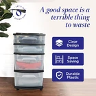 Store New Arrivals Add to Favorite View Feedback Contact 4-Drawer Plastic Storage Cart Organizer with Removable Wheels, Black Description Item model number 05564BKDC.01 Item Package Quantity 1 Style 4 Drawers (Set of 1) Assembly Required No Part Number 05564BKDC.01 Color Clear/Black Pattern Storage Cart Brand HOMZ Material Plastic Batteries Required? No Certification certified frustration-free Item Weight 7.65 pounds Manufacturer Homz Batteries Included? No Frame Material Plastic Number of Drawers 4 Global Trade Identification Number 10073527171093 Size 1 Pack Product Dimensions 12.5"D x 25.5"W x 14.25"H Included Components Medium Cart^ Plastic Storage Cart: Perfect the art of hiding your hoard with the HOMZ storage drawer set. This plastic cart is made to fit anywhere you need organizing power, whether at home or work. Space Saving: This cart has 4 roomy storage drawers and a small vertical footprint. The cart measures 12.5" L x 14.25" W x 25.5" H, while each biggest drawer interior measures 12.31" L x 9.92" W x 6.85" H and each smallest drawer interior measures 12.31" L x 9.92" W x 3" H. It Will Fit: Our rolling storage drawers feature clear plastic materials and removable wheels for easy transportation. Use them to store toiletries, office supplies, crafts, and more. From Trash to Treasure: Life in plastic is fantastic when the plastic is made from 90% recycled materials. We know the earth is important to you, so our cart is good for your items and the planet. HOMZ for Your Home: From organization to storage, we have the container that you are looking for. Allow us to make your house a HOMZ. Product Description 4 Drawer Comparison Table Black Frame Color Black Clear Cart Color Clear 12.5Dx14.25Wx25.5H Dimensions 14.25Dx12.5Wx39.31H Black Frame Color White Clear Cart Color Clear 12.5Dx14.25Wx25.5H Dimensions 14.25Dx12.5Wx39.31H Black Frame Color Black Clear Cart Color Clear 12.5Dx14.25Wx25.5H Dimensions 12.5Dx14.25Wx25.5H 6 Drawer 6 Drawer 3 Drawer ABOUT US We offer the best prices around on high quality products. Our E-store includes media such as books, movies, music and games while offering electronics, toys, sporting apparel, clothing, tools, general home, garden items and more. SHIPPING We are always working hard to ensure your package arrives as soon as possible. Please understand that some factors like weather, high postal traffic, and the performance of shipping companies are outside of our control. We offer free shipping to the lower 48 states and ship within 2 business days of payment, usually sooner. We do not accept P.O. Boxes. Please provide a physical address. RETURNS We offer a 30-Day Return Policy on items which you are not completely satisfied with. You have the option for a full-refund or an exchange of the item. No returns are available on items shipped outside of the USA. PAYMENT We accept PayPal. CONTACT US This page content is yet to come Please ad us to your favorite seller and visit again later Thank You CUSTOMER SATISFACTION We try our very best to make sure every customer is completely satisfied. If there's a problem, message us! We're happy to help.