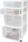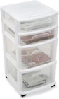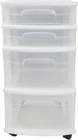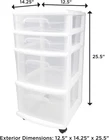 4 Drawer Plastic Storage & Organizer Tower | 2 Large Drawers & 2 Small Drawers | Storage for Home, Office, Classroom, Arts & Crafts Supplies, Dorm Rooms | White Frame with Clear Drawers https://autods-scraper-images.s3-us-west-2.amazonaws.com/5942fe5d1481a9024cc568f798d0595d.png ORGANIZING ESSENTIAL Cabinet has 4 easy glide drawers. Top has 2 recessed sections for pens, notepads, etc. Consolidate office or school items, crafts, or toys. The case has a white frame and clear drawers that enable you to see inside contents. ROTATING WHEELS For easy portability and convenience, this cart includes swivel caster wheels allowing 360° rotation. For stationary placement, the wheels can be removed. BUILT TOUGH Constructed from durable heavy-duty plastic, this multi-purpose storage cart is made for long lasting usage. SHIPS PRE-ASSEMBLED Other than popping the wheels into their slots, no assembly is required. Dimensions: 12.5"D x 25.5"H x 14.25"W. Drawers: 3”H shallow / 6.85” deep. ABOUT US Homz provides innovative organizing solutions for all the “stuff” we accumulate and need to store. We are committed to sustainability and use recycled materials in our manufacturing whenever possible. Our collection is proudly made in the USA. Stay better organized and limit clutter with the help of this 4-drawer plastic storage cart. It is ideally suited for home, office, dorm room, or nursery. Clear drawers allow contents to be identified with ease. Casters are included for easy and convenient mobility. The cabinet’s top features two recessed compartments for quick access to pens, stapler, stationary, and so much more. Color White Number of Drawers 4 Frame Material Plastic Product Dimensions 14.25"D x 25.5"W x 12.5"H Free shipping We ship for free!