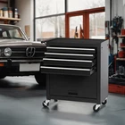 Features: Drawer: Equipped with four smooth-opening drawers, the tool chest with drawers is designed for easy access and organization. The drawers accommodate tools, folders, and other essentials. Product Introduction: Constructed from robust cold rolled steel with a powder-coated finish, this tool cart with drawers offers durability and high wear resistance. Assembly: The rolling tool chest with drawers comes pre-assembled, with four 4" casters (two with brakes and two without) for smooth movement and stability. The ball-bearing drawers ensure gentle operation. Usage Scenario: Ideal for workshops, garages, and home improvement areas, this rolling tool chest is perfect for organizing and accessing tools and accessories efficiently. The design includes a handle for added convenience a nd mobility.