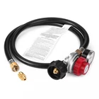 This Regulator Hose 0-30 PSI adjustable output is must have item for your propane burners, turkey fryers, heaters, smokers and all other propane appliances, Easy to use and good for secure gas flow, No gas leak, Simply connect and go, Extremely reliable. Output pressure 0~30 PSIG adjustable regulator .Hose measures 4 Feet long.Measuring from 0- 60 psi (as well as 1-4 100xKPA), the Pressure Gauge lets users control their heat with a precise level of accuracy. Easy and quick to install. Type 1(QCC 1) tank end connector & 5/8"-18 UNF outlet connection (3/8 inch female flare fitting has an outside diameter of 5/8 inch). 3/8" female flare fitting, fit for gas grills, gas stoves, turkey fryers, burners, smokers, cooker, fire pit, hot water heater, as long as your appliance connection is 3/8" male flare connector. 3/8" Female Flare Fitting has an outside diameter of 5/8", come with pipe fitting 3/8" flare M x 1/8" MNPT. Specifications: Material: PVC + Cuprum Length:approx. 123cm/ 4Feet Inlet Pressre: 25~250 PSIG Outlet Pressure: 0~30 PSIG adjutable Gauge reading: 0~60 PSI (1- 400 x kpa ) Adjustable Range: 0~30PSI Inlet connection: 3/8" Flare Fitting Male QCC(ACME) Outlet Connection: 5/8"-18 UNF Female flare swivel fitting (3/8" SAE) Max. flow capacity: 130,000 BTU/hr. Works with QCC1/ Type 1 propane tank. Note: For safety, please adjust it to 0 PSI (shut off the regulator.) Please do not apply this regulator to an appliance which supposed to equipped with a LOW PRESSURE regulator. What's included: 1 x Propane Regulator 1 x Adapter(3/8" flare M x 1/8" MNPT)