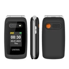 BASIC INFO Model No. UNIWA V202T Operating system RTOS (not smart) Style 4G flip senior phone Dimension 104*55*19.8mm Weight 113g (include battery) Material Plastic Color Black, blue, red Languages Multi-language HARDWARE Display Double screens: 2.4 inch QVGA inner screen, 320*240px; 1.77 inch, 160*128px outer screen Processor Unisoc T107 Cat.1 (T117 Cat.4 optional for OEM) RAM 48MB RAM ROM 128MB ROM, support TF card up to 32GB maximally Camera Single Camera: 0.3MP front camera Battery Removable 4.35V/1450mAh Li-ion battery Speaker 2030 BOX speaker (HAC support) Vibrator Support NETWORK & CONNECTIVITY Bands 2G: GSM 850/900/1800/1900MHz 3G: WCDMA 850/900/1700/1900/2100MHz 4G: FDD-LTE B1/B2/B3/B4/B5/B7/B8/B12/B17 B20/B28a/B28b/B66; TDD-LTE: B38/B40/B41 BT V5.0 WiFi & Hotspot Optional for OEM order GPS Positioning Optional for OEM order I/ O INTERFACES SIM slots *2 (Nano+Nano) TF card slot *1 3.5mm earphone port *1 USB Type-C port *1 OTHER FEATURES SOS Emergency Button Support preset 5 SOS emergency contacts and 1 emergency SMS Phonebook Number 2000 Torch light Support Wireless radio Support ACCESSORIES Battery *1 Charger *1 User manual *1 Charging Dock *1