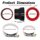 4Inch to 5Inch Straight Black Silicone Reducer Coupler with 2 T-Bolt Clamps 4 Package includes:1pc 4"-5" Straight Black Silicone Reducer Coupler,2pcs stainless steel hose Clamps. Made of high quality silicone,4-Ply. Inner diameter 102mm(4")-127mm(5"),Length 76mm,Thickness 5mm Universal Application.UV and ozone resistant, Great for marine and industrial use. Working Temperature: -76 Degree F (-60 Degree C)- +500 Degree F (+260 Degree C). Working Pressure: 0.3 Mpa (43.5 PSI)-0.9 Mpa (130.5 PSI). Bursting Pressure: 2 Mpa Shipping We offer FREE shipping on all orders! We ship within Three business days of payment, usually sooner. We use a selection of shipping services such as UPS, FedEx, USPS etc. We only ship to the lower 48 states, no APO/FPO addresses or PO Boxes allowed. Local pickups and combined shipping options are not provided at this time. Return You can return a product for up to 30 days from the date you purchased it. Any product you return must be in the same condition you received it and in the original packaging. Please keep the receipt. Payment We accept payment by any of the following methods: PayPal Please pay as soon as possible after winning an auction, as that will allow us to post your item to you sooner! Feedback Customer satisfaction is very important to us. If you have any problem with your order, please contact us and we will do our best to make you satisfied. Contact Us If you have any queries, please contact us via ebay. We usually respond within 24 hours on weekdays. Please visit our eBay store to check out other items for sale! Thank you for shopping at our store.