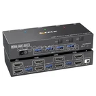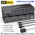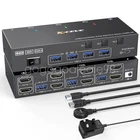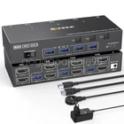 Features: γ Ultra HD 4K@60Hz/2K@144Hz γ USB 3.0 Dual Monitor KVM Switch HDMI Support Resolution ππ@ππππ³. ππ@πππππ³,@πππππ³. 3 computers and 2 monitor switches, also supports connecting 2 computers with different resolutions on the input side, e.g. one with 4K@60Hz and the other with 4K@30Hz, 1440P@60Hz3D, 1080P@60Hz or lower. Note: If your device outputs 4K resolution, please use an HDMI 2.0 cable (cable length not exceeding 1.5 meters) and make sure that both your computer and monitor also support 4K. γ HDMI KVM Switch with 4 USB 3.0 Portsγ The USB 3.0 KVM Switch is equipped with 4 USB 3.0 ports for sharing USB devices such as mice, keyboards, scanners, printers, USB flash drives, and other USB devices. The USB 3.0 version ensures a faster and more stable data transfer, and is a great solution to the problem of many USB devices disconnecting during use. Excellent solution to the problem of many USB devices disconnecting during use. γ Dual monitor kvm switcher supports 2 switching modes γ HDMI kvm switcher dual monitor supports physical buttons and wired control. You can switch computers by pressing the buttons on the panel or using the wired remote control. LED lights indicate which computer is active. Note: Keyboard shortcut (hotkey) switching method is not supported. γ Two display modesγ KVM switch dual monitor hdmi supports extended display mode or copy display mode, in "mirror" mode, the main screen can be copied to the second screen to output two identical screens. In "Extended" mode, you can drag the window on the main screen to the second screen to output two different screens. γ Wide compatibility and easy to useγ This dual-monitor KVM switch is plug-and-play and does not require drivers. Requires each connected computer to have 2 HDMI ports, but there may be many computers, especially laptops, that may not have two 2 HDMI ports, then an adapter is needed, such as USB-C to HDMI, DP to HDMI. γKVM Switch Dual Monitor 3 Computers 2 Monitorsγ This 2 monitor KVM switch allows you to control 3 computers or laptops with just one set of wired or wireless keyboard and mouse, sharing 4 USB 3.0 devices and 2 monitors. Widely used in office, multimedia teaching, conference room and so on. Specification: Product Name: HDMI KVM Switch HDMI version: 2.0 DP version: 1.4 USB Type: USB 3.0 Data Rate: 5Gbps Connection port: HDMI-A/standard DP interface HDMI cable: <1.5 meters (resolution:4K@60Hz 2K@144Hz) DP cable: <1.5 meters (resolution: 4K@60Hz 2K@120Hz) Operating power supply: 12V Plug specification: EU/US/UK (optional) Product size: 15.8*6.6*2.95cm Product material: aluminum alloy Product color: black Package Included: 1*KVM switch 3*USB cable 2*HDMI cable 1*Wired controller 1*User Manual 1*Power Adapter Attention: 1. Due to manual measurement, the product size will have 1-2cm error! 2. Due to the lighting effect and shooting angle, there may be some color difference, please understand!
