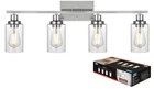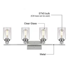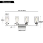 Unique Design: This wall sconce ideal for striking a balance between strength and elegant beauty. Encased in attractive clear glass cylinder maximizes light output for an optimally bright ambience. The wall mount light design allows for this sconce to be installed in an upwards or downwards position Easy Installation: All mounting hardware required for installation are included in the package. Just need to follow the illustrated instructions provided for assembly and installation Bulb Type: Support any LED/CFL/or other less than 60W bulbs with E26 Base for this wall sconces(Bulbs NOT Included), Could be fully dimmable when used with dimmable bulbs and compatible dimmer switch Application: Ideal as a bathroom vanity light fixtures, living room sconces wall lighting, wall lights bedroom or porch light fixtures wall mount and so on, the clear glass shade sconces adds a modern decor touch Dimensions: Bathroom Light: 10.4" (H) x 31" (L), Back plate: 4.72" (H) x 7.9" (L), Clear Glass Shade: 6" (H) x 4" (Opening). The bathroom lights design allows for this sconce to be installed in an upwards or downwards position