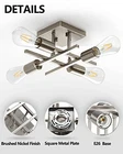 Return Policy Fast Delivery Trusted seller 4-Light Semi Flush Mount Ceiling Light, Modern Brushed Nickel Close to Ceiling Light Fixtures, Easy Assembled, House Indoor Ceiling Lights for Bedroom Living Room Entryway Product Description BRUSHED NICKEL CELING LIGHT: This ceiling light retains the classic but also innovates on the basis of the classic, with smooth lines, minimalist style. Made of premium brushed nickel finish metal, stable enough to fit anyw indoors DIY & EASY TO ASSEMBLE- Our close to ceiling light equipped with installation kits, step-by-step instructions manual and extra accessories, easy and quick to assemble. If you have any installation questions, please contact us by email WIDE APPLICATION: Semi flush mount ceiling light brings attractive vintage retro and elegant charm. It is ideal for medium-high ceilings, perfectly fit for indoor area, hallway, bathroom, laundry, bedroom, living room, kitchen and so on 4-LIGHTS E26 SOCKETS: Our ceiling light fixture comes with 4 E26 bulb compatible sockets (bulbs not include, up to 60W each), it is also compatible with dimmers(not include). Please check the size of the product in the picture carefully before purchg Service: If t is any damage or defect after receiving about our brushed nickel ceiling lights, please feel free to contact us. We will assist you and provide a satisfied shopping experience. Shipping Returns Payment Shipping Shipping is FREE to all addresses other than APO/PO boxes in the lower 48 states. All our stock ships from US-based warehouses. Shipped via USPS or UPS (depending on location and package weight) Unless stated otherwise, all orders will ship within 24-72 hours of your payment being processed. Check our feedback to see the great reviews of FAST shipping we offer. Returns Seller does not accept returns Payment We currently accept payment via eBay managed payments only. Once payment is cleared, we will dispatch your shipment within 1-3 business days. Please refer to the "Shipping" tab for more information regarding shipping speed to your destination.