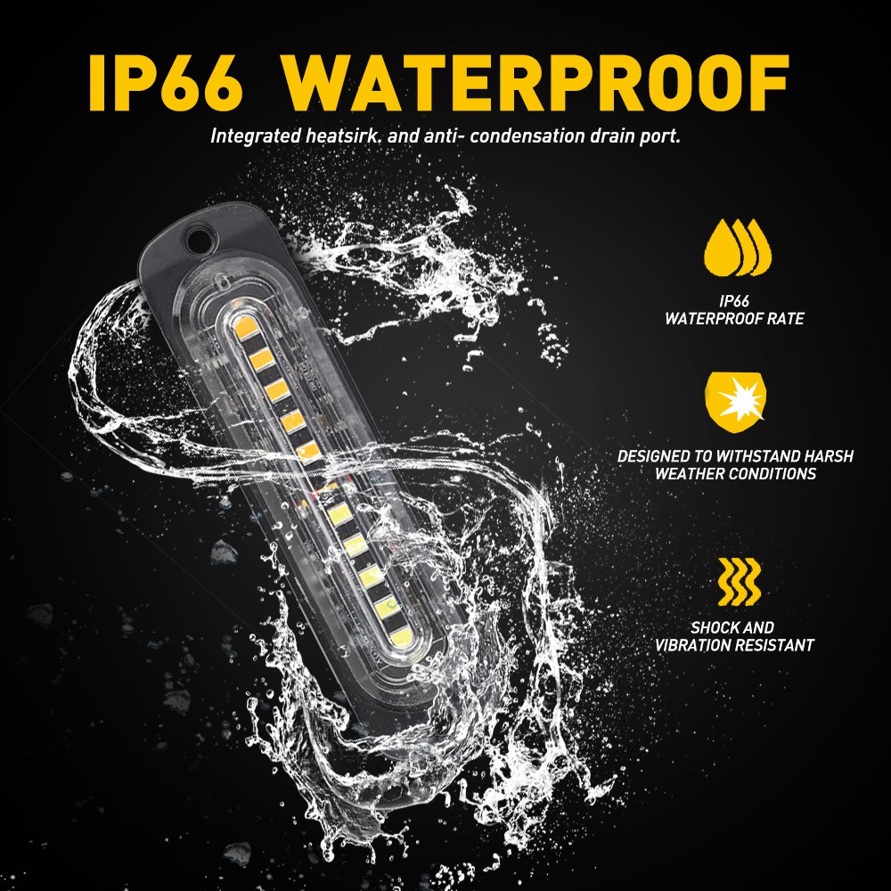 These LED strobe lights are fantastic! Super bright, waterproof, and durable—perfect for trucks, SUVs, or emergency vehicles. The white/amber combo is highly visible, and the wide voltage range makes installation easy. Love the sturdy aluminum casing and long lifespan. Great value for the price!