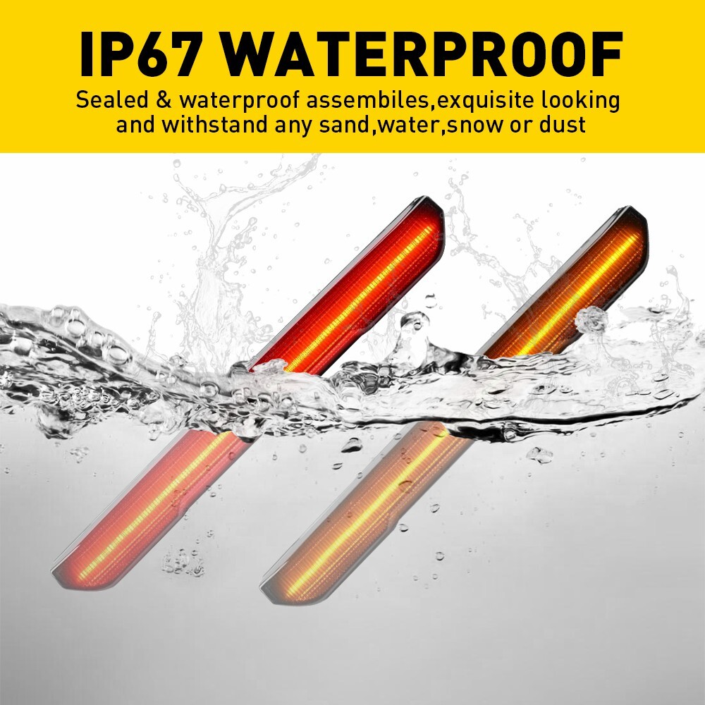 These smoked LED side marker lights are a fantastic upgrade for GMC Sierra HD trucks! The 1:1 OEM design fits perfectly, and the smoked casing gives a sleek, aggressive look. Super bright LEDs provide excellent visibility, and the IP67 waterproof rating ensures durability in any weather. Easy to install and built to last over 50,000 hours—no more dim or cracked factory markers. The amber front and red rear lights maintain proper safety compliance while enhancing your truck's style. Great value for a premium-looking mod!