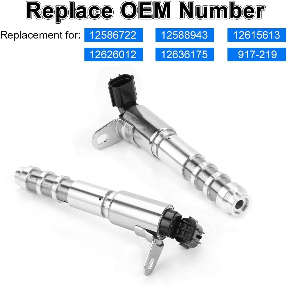 4PCS VVT Engine Variable Timing Solenoid 12626012 For Cadillac Buick Chevy GMC Item Description 【Fit Vehicle Model】 Oil Control VVT Valve Variable Valve Timing Solenoid Compatible with Camaro 2010-2015 V6 3.6L, Caprice 2012-2017 V6 3.6L, Captiva Sport 2012-2015 V6 3.0L, Colorado 2015-2016 V6 3.6L, Equinox 2008-2009/2012-2020 V6 3.6L, Equinox 2010-2012 V6 3.0L, Impala Limited 2014-2016 V6 3.6L, Malibu 2008-2012 V6 3.6L, Traverse 2009-2020 V6 3.6L; Compatible with GMC Acadia 2007-2016 V6 3.6L, Acadia Limited 2017 V6 3.6L, Canyon 2015-2016 V6 3.6L. 【OEM Part Number】 VVT solenoid intake & exhaust Replace# 12586722, 12588943, 12615613, 12626012, 12636175, 917-219. 【Functions and Power】 The Variable Valve Timing Oil Control Intake Solenoid improve the engine operating efficiency, and reduce the engine load, thereby effectively reducing nitrogen oxide emissions, reducing knocking, and prolonging Engine component service life.This adds to fuel economy and also aids in boosting horsepower. 【Excellent Durability】 Our The VVT Variable Valve Timing is made of premium material for long-lasting durability and high-temperature resistance. Each Actuator Solenoid undergoes rigorous quality testing.If either actuator fails simply contact us for a replacement. 【Easy Replacement】 OE Design Replacement VVT Timing Solenoid Valves Assembly Kit ensures directly fit and accurate operation.Installation is easy, took several minutes can be used it. Features Machined to precision tolerances preventing leakage, wear and seizing Corrosion-resistant solenoid enclosure and mounting brackets Rubber seals are compatible with today’s synthetic oils and blends The advanced technological design helps restore engine performance and fuel economy Meet OE specifications for fit, form, and function Reliable Performance Easy Installation Long Service Life HOW DOES A VVT SOLENOID WORK? STEP 1 : The VVT solenoid works with oil pressure, using directions from the ECU to alter rotation of the camshaft. STEP 2 : The solenoid alters the oil flow in the conduit leading to the camshaft phaser(s). STEP 3 : Conduits can be “instructed” to hasten or delay intake valve opening depending on which conduit will be called upon by the solenoid. Specifications Condition:100% Brand New Warranty: 90 Day Free Return:30 Day Product Name: Variable Valve Timing Solenoid Fitment Type: Direct Replacement Model: For Cadillac Buick Chevy GMC Surface Finish: Silver Material: Metal Quantity: 4PCS Interchange Part number 12586722, 12588943, 12615613,12626012,12636175 Fitment for Buick Enclave 3.6L 2008 2009 2010 2011 2012 2013 2014 2015 2016 2017 2018 for Buick LaCrosse 3.0L 2010 for Buick LaCrosse 3.6L 2005 2006 2007 2008, 2010 2011 2012 2013 2014 2015 2016 for B uick Rendezvous 3.6L 2004 2005 2006 for Cadillac ATS 3.6L 2013 2014 2015 2016 2017 2018 for Cadillac CTS 2.8L 2005 2006 2007 for Cadillac CTS 3.0L 2010 2011 2012 2013 2014 for Cadillac CTS 3.6L 2004 2005 2006 2007 2008 2009 2010 2011 2012 2013 2014 2015 2016 2017 2018 for Cadillac SRX 2.8L 2010 2011 for Cadillac SRX 3.0L 2010 2011 for Cadillac SRX 3.6L 2004 2005 2006 2007 2008 2009, 2012 2013 2014 2015 2016 for Cadillac STS 3.6L 2005 2006 2007 2008 2009 2010 2011 for Cadillac XTS 3.6L 2013 2014 2015 2016 2017 2018 for Chevrolet Camaro 3.6L 2010 2011 2012 2013 2014 2015 for Chevrolet Caprice 3.6L 2012 2013 2014 2015 for Chevrolet Captiva Sport 3.0L 2012 for Chevrolet Colorado 3.6L 2015 2016 for Chevrolet Equinox 3.0L 2010 2011 2012 for Chevrolet Equinox 3.6L 2008 2009, 2013 2014 2015 2016 2017 for Chevrolet Impala 3.6L 2012 2013 2014 2015 2016 2017 for Chevrolet Impala Limited 3.6L 2014 2015 2016 for Chevrolet Malibu 3.6L 2008 2009 2010 2011 2012 for Chevrolet Traverse 3.6L 2009 2010 2011 2012 2013 2014 2015 2016 2017 for GMC Acadia 3.6L 2007 2008 2009 2010 2011 2012 2013 2014 2015 2016 for GMC Acadia Limited 3.6L 2017 for GMC Canyon 3.6L 2015 2016 for GMC Terrain 3.0L 2010 2011 2012 for GMC Terrain 3.6L 2013 2014 2015 2016 2017 for Pontiac G6 3.6L 2007 2008 2009 for Pontiac G8 3.6L 2008 2009 for Pontiac Torrent 3.6L 2008 2009 for Saturn Aura 3.6L 2007 2008 2009 for Saturn Outlook 3.6L 2007 2008 2009 2010 for Saturn Vue 3.6L 2008 2009 2010 Variable Valve Timing Solenoid Please Double-Check that this is compatible with your vehicle. Package Included 4x Variable Valve Timing Solenoid As pictures show FAQ: I purchased by mistake, how do I cancel the order? Please contact us ASAP. If the item has not been shipped out we can cancel the order for you. If the item was shipped out you can refuse the package and wait for the item to return to us. I received your item but it does not fit or is defective Please contact us so we can assist you on the matter. Buy with confidence Our quality is based on meeting the requirements of the manufacturer and improvement them in design problems manufacture. NOTE: (1)It would be highly appreciated if you might contact us first once you have any problems concerning the items. And you can expect all the issues would be resolved ASAP! (2)Please let us know before you send us the neutral/negative feedback that wont help to finish the issues. And I will definitely try my best to provide the best solutions which would meet our satisfactory! (3)According to the distance of the receipt address items would be sent from CA or NJ