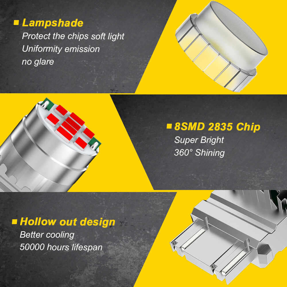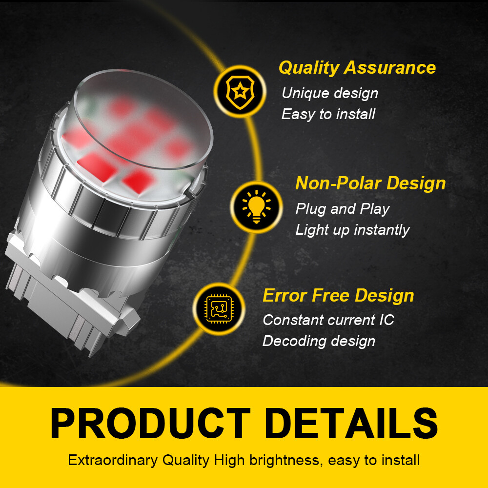 4pcs Brand New 3000LM 3156 3157 LEDs. Bulb Size:(For Reference Only) 3156 3056 3156A 3456 4156 3157 3157A 3047 3057 3357 3457 3457A 3757 4057 4111 4157,4157NA,3157LL,3356, 4157, 4114,3157A, etc. Application: For Replacement of Brake, Parking, Tail light,etc. Attention: CanBus Error Free: No. For most vehicles, just directly plug and play. Yet for some vehicles with CAN-BUS system, it may require install decoder or load resistor (NOT included) to avoid hyper flash or fast blinking.Those are NOT problems of LED bulb and NOT covered by warranty. (decoder must be purchased separately) Feature:: - Name: 3157 LED light - Error free and non-polar design - Replace 3156 3157 halogen bulbs - Color: Red 800K - LED Chips:High power 2835SMD - Working voltage: 9V-18V DC - Working Power: 7W - Working temperature:-70℃~105℃ - Waterproof: IP68 - Easy installation, just plug & play. Package : 4x LED 3157 Bulbs Payment Delivery details Return Feedback Contact us Payment 1.We only accept ebay payment, if you have any questions with your payment, please let us know in time, we will do our best to help you, your satisfaction is our service concerns . 2.We Will Only Ship To ebay Confirmed And Verified Address, Please Update Your Shipping Address On eBay Before Placing The Order. Delivery details Item will be shipped within 1-2 working days after full payment is received. -- Orders from USA will be shiped by USPS .All items will ship within 1-2 business day.It normally takes 2-7 days for delivery. -- Orders from China will be shiped by Standard (Speedpack ) / Economic Shipping, with tracking number.The shipment usually takes 12-15 business days to USA/ UK/ Canada, and For International Orders, 15-40 business days to Europe,Auatralia ,South America... Import duties, taxes and charges are NOT included in the item price or shipping charges. These charges are the buyer responsibility. Please check with your country customs office before buying. Return 1.We offer 30 days return policy. Please contact us within 30 days t from the date you receive your order if you have any issues with the product or want return .Refund will be send after we receive your return package. 2.All returned items should be in the original packaging , return tracking information should be provided .. 3.Buyer is responsible for return shipping cost due to the problem not caused by item quality itself . Feedback 1. Negative feedback will not help resolve any problems you have, please contact us via eBay messages before leaving negative feedback or open any ebay dispute,Our customer service will make best effort to help you with the issues. 2.We maintain high standards of excellenceand strive for 100% customer satisfaction! Feedback is very important to us. We appreciate all our customers to leave a positive feedback and 5 Scores DSR . Contact us Our Working Time:(GMT+8)Monday to Friday,9:00-18:00.Please contact us through eBay's "Ask seller a question" link or "My Messages".